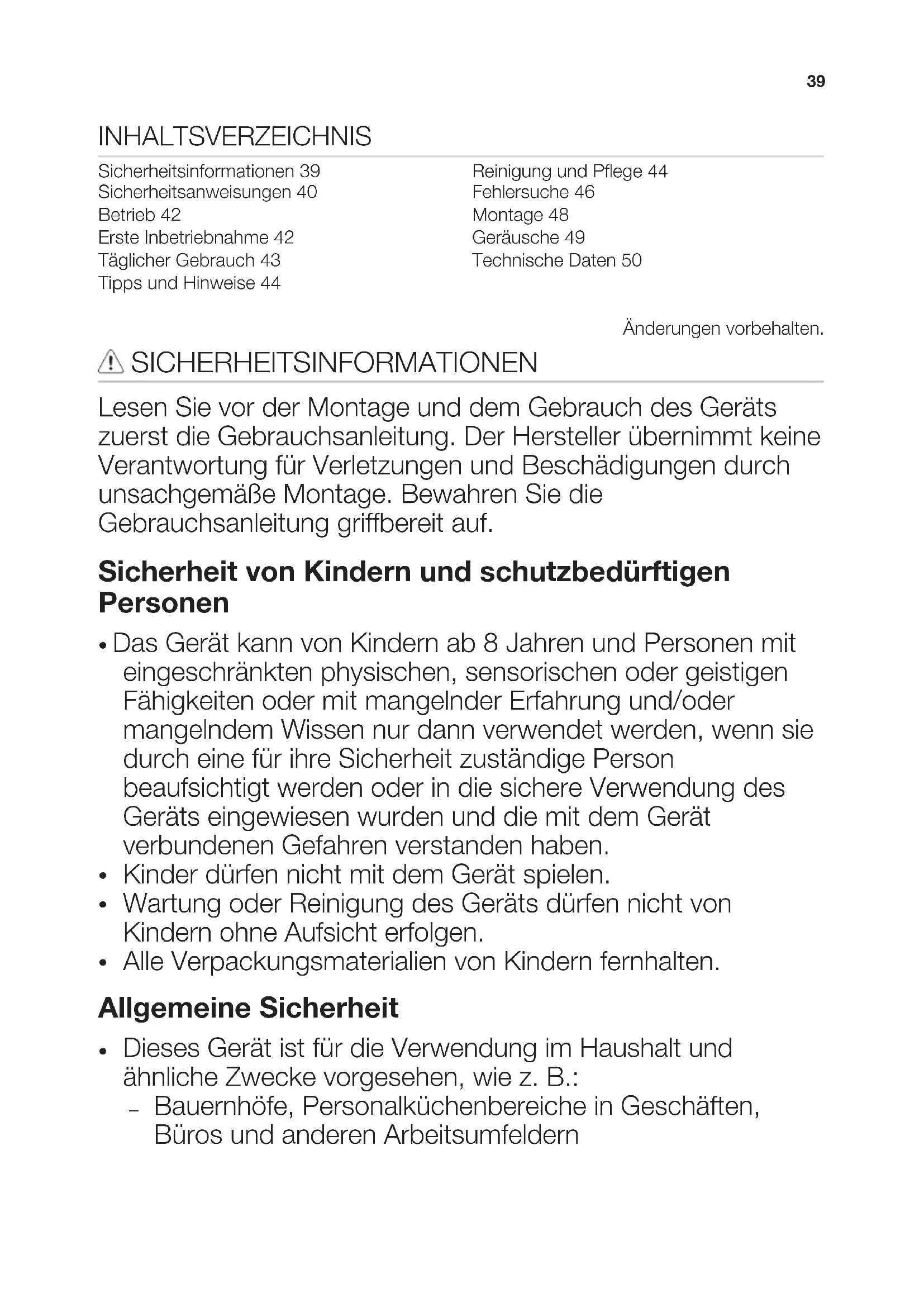 Bauernhöfe, Personalküchenbereiche in Geschäften, Büros und anderen Arbeitsumfeldern 39– Für Gäste in Hotels, Motels, Pensionen und anderen wohnungsähnlichen Räumlichkeiten
