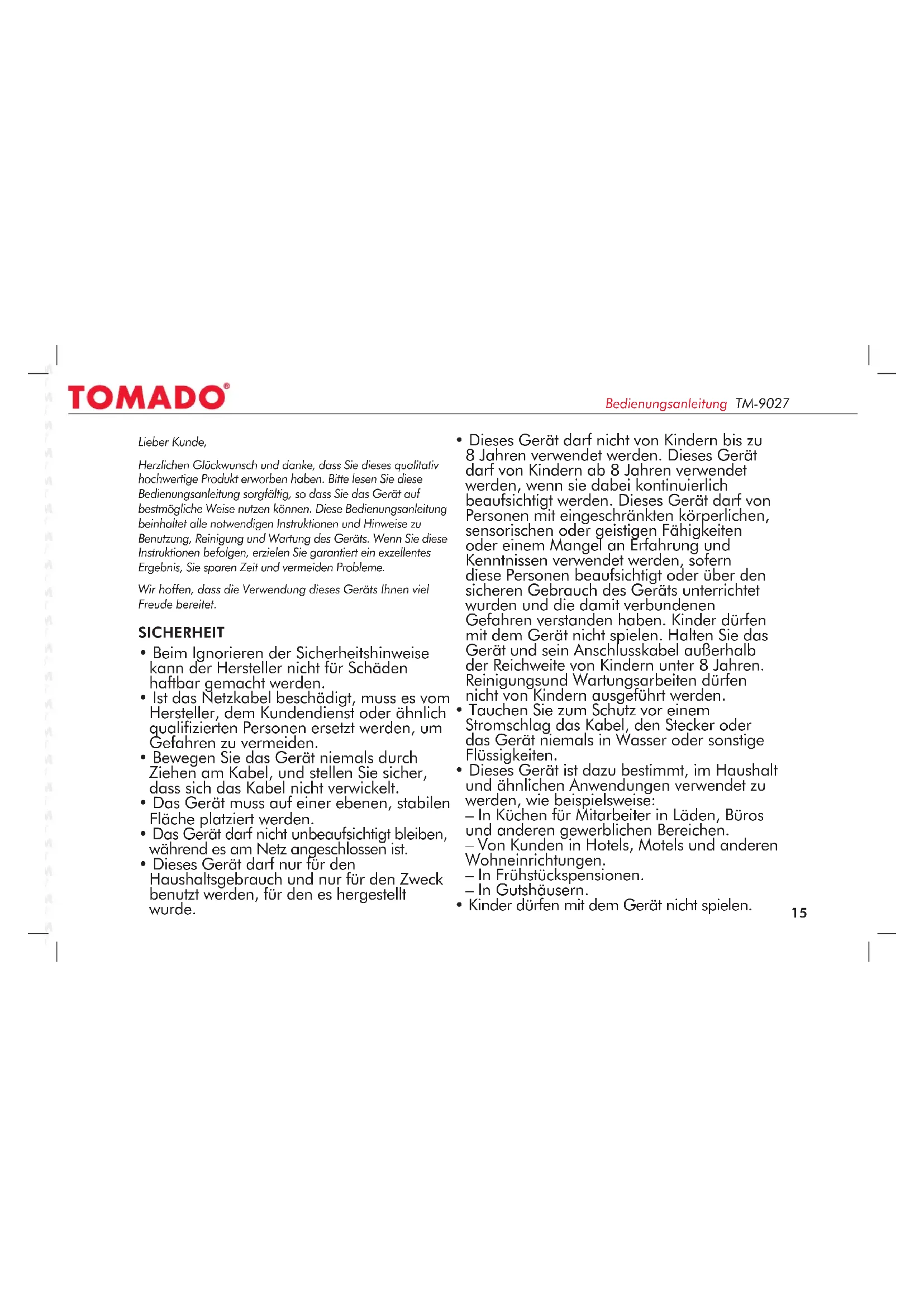 BEDIENUNGSANLEITUNG TM9027 Tomado