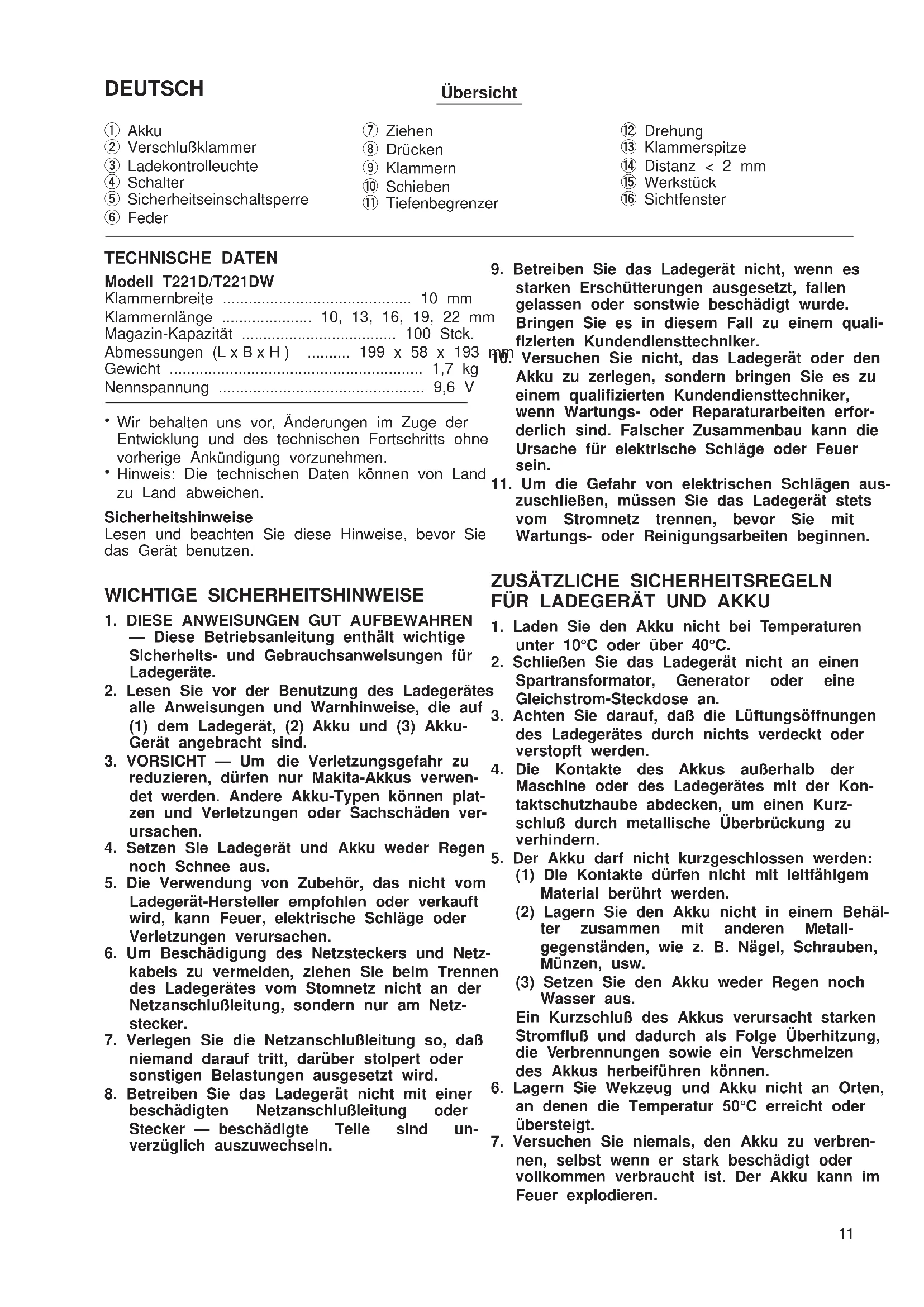 BEDIENUNGSANLEITUNG T221D MAKITA