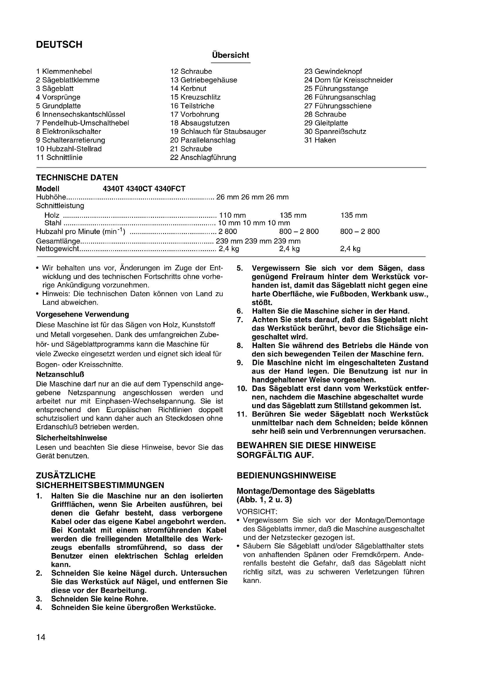These Maschine ist für das Sagen von Holz, Kunststoff und Metall vorgesehen. Dank des umfangreichen Zube-hör- und Sägeblattprogramms kann die Maschine für weitere Zwecke eingesetzt werden und eignet sich ideal für Bogen- oder Kreisschnitte.