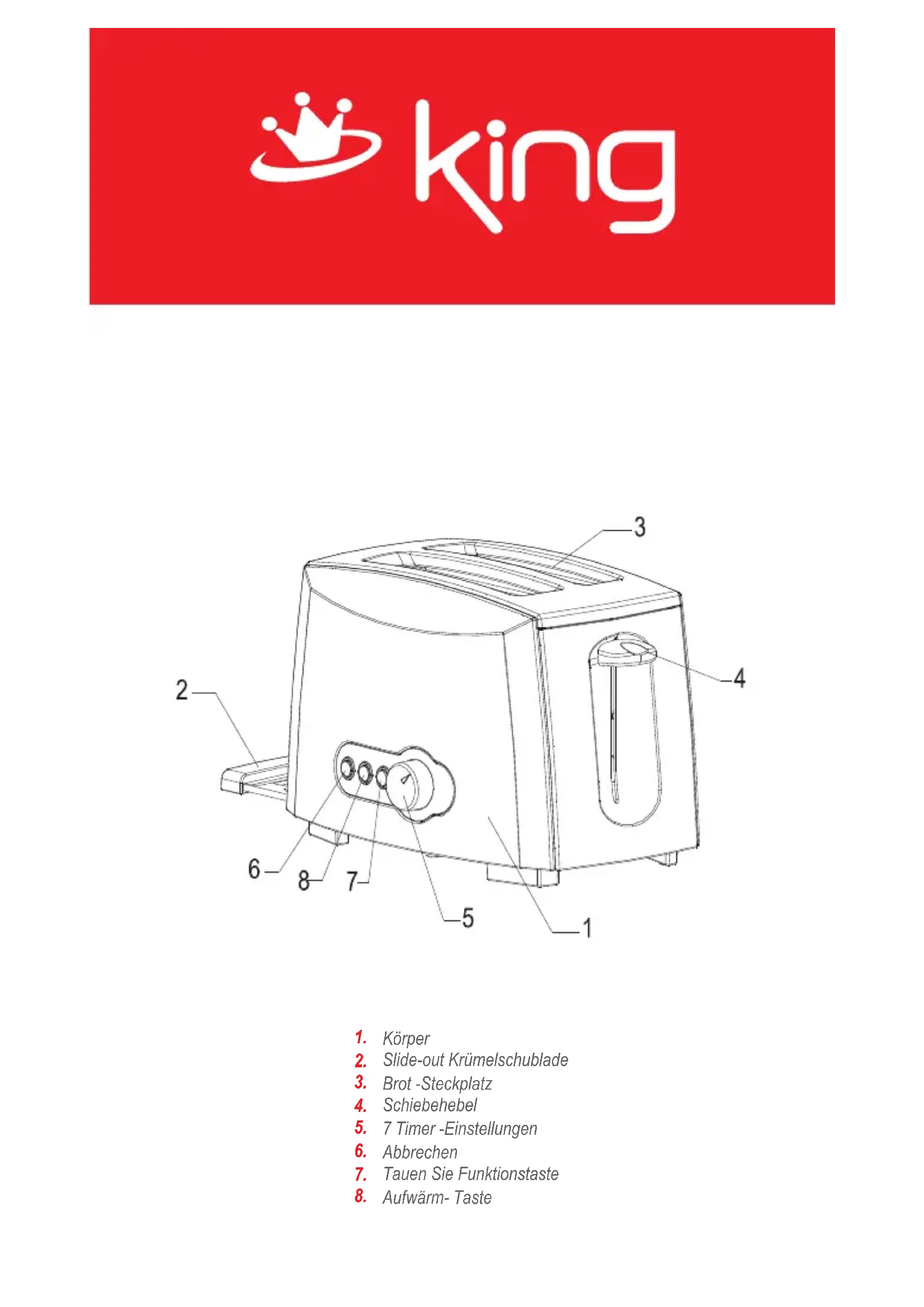 K 2175 R Crispy - Toaster KING - Kostenlose Bedienungsanleitung