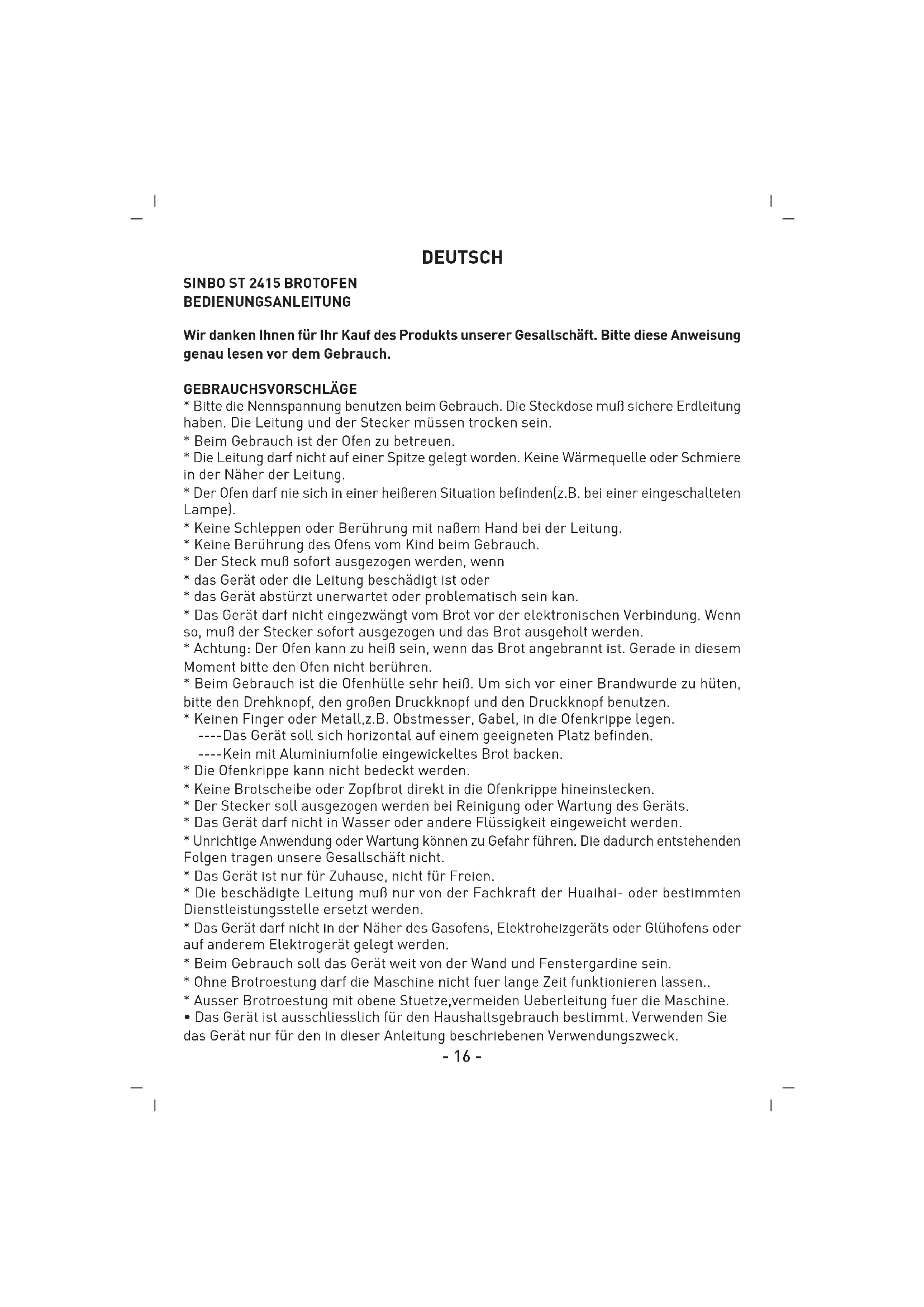 BEDIENUNGSANLEITUNG ST 2415 SINBO