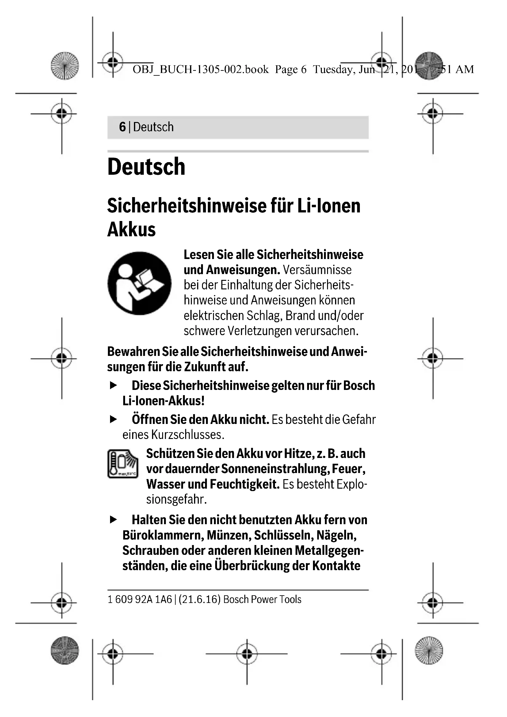 | Sicherheit | Kontakt mit Wasser vermeiden, Akku nicht durchbohren oder kurzschlie dfen |