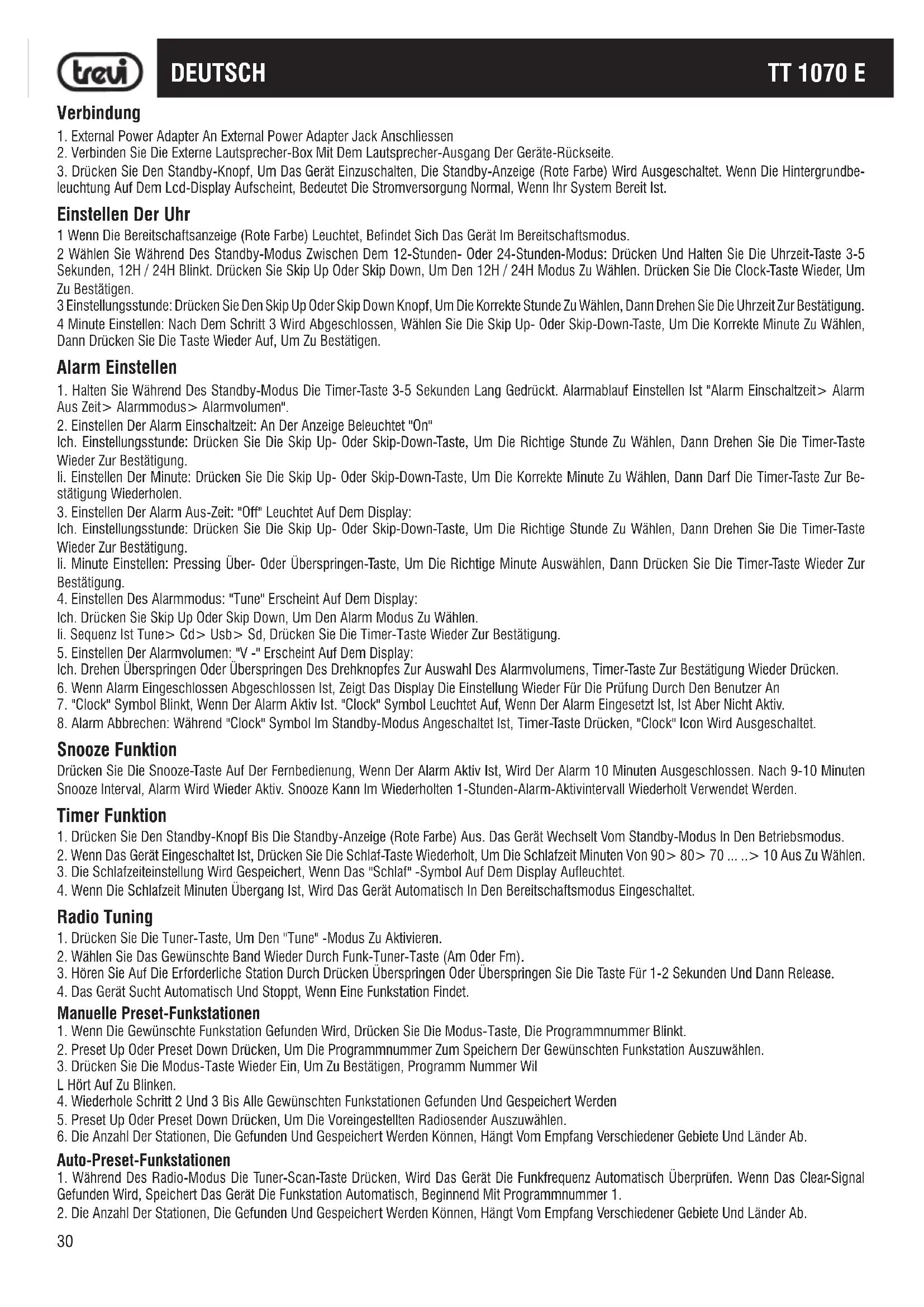 BEDIENUNGSANLEITUNG TT 1070 E Trevi
