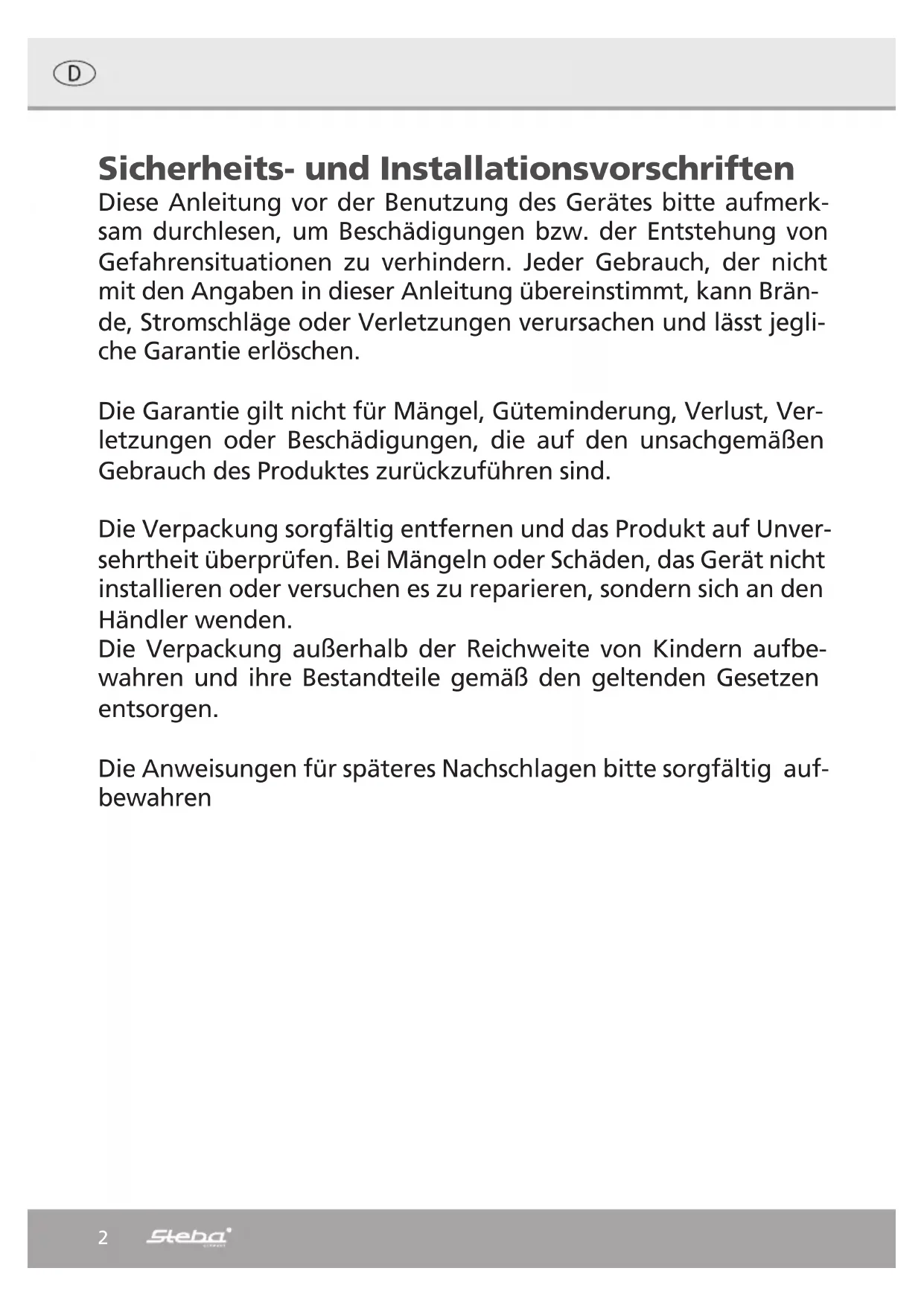 | Kontaktangaben | Steba Elektrogeräte GmbH & Co.KG Pointstr. 2 96129 Strullendorf | ||||||