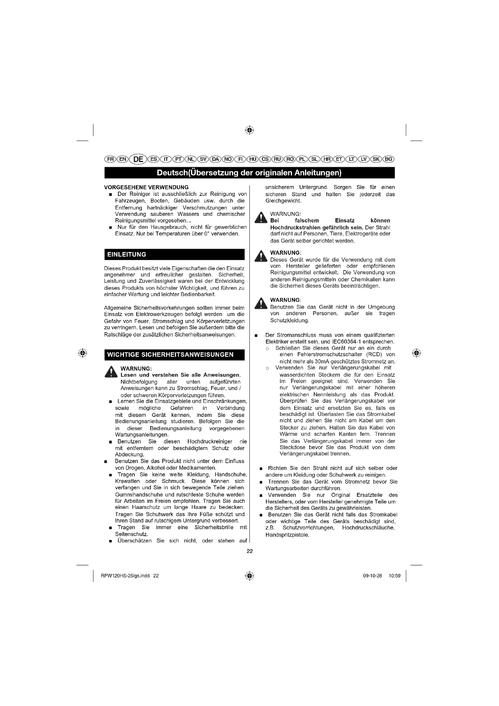 BEDIENUNGSANLEITUNG RPW130HS RYOBI