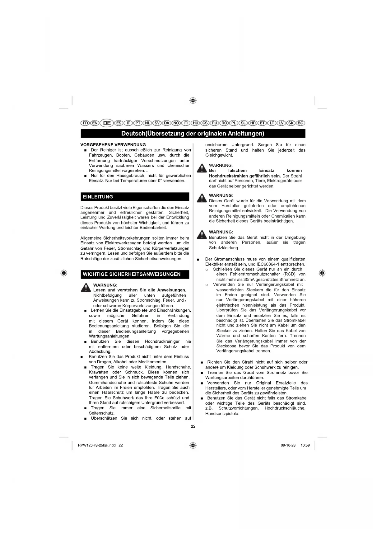 BEDIENUNGSANLEITUNG RPW120HS RYOBI