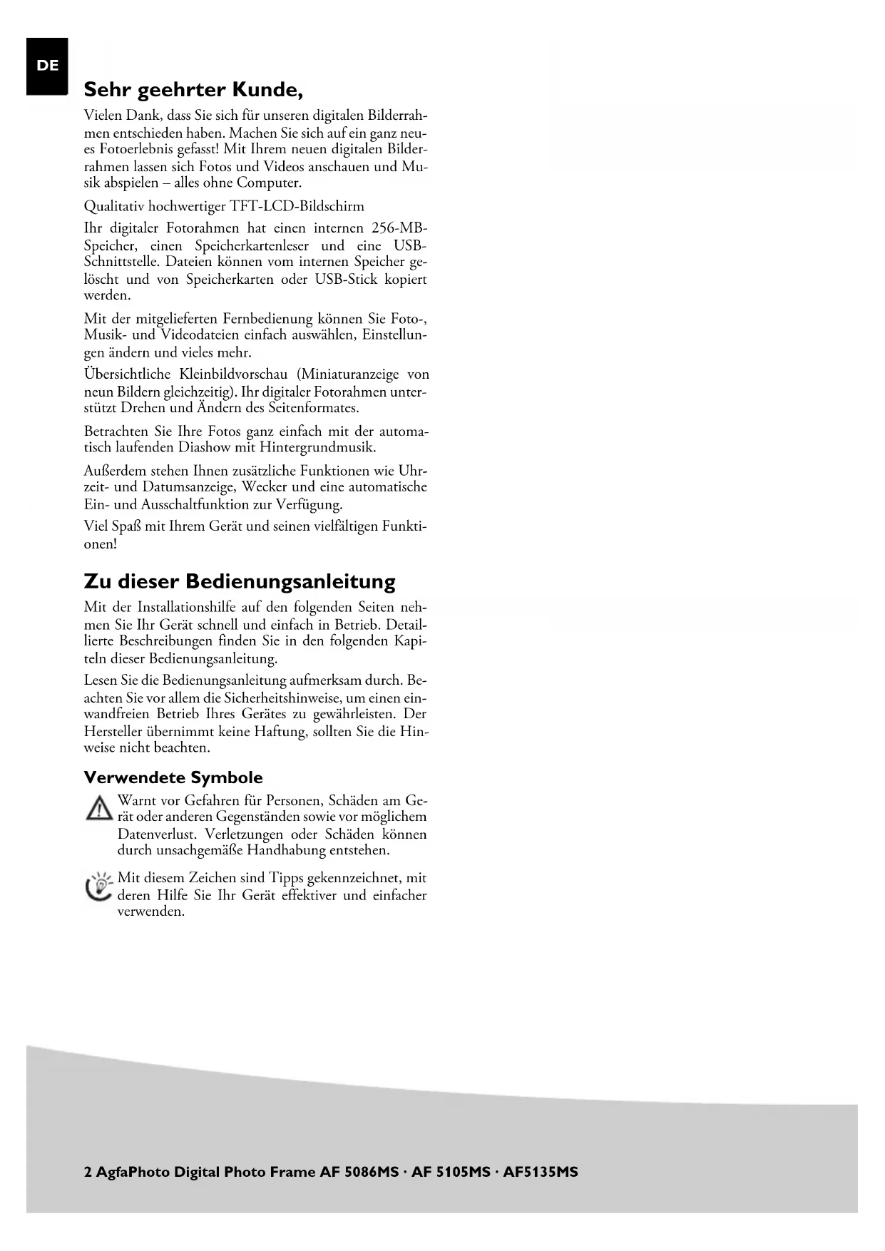 AF 5135MS - Digitaler Fotorahmen AGFA - Kostenlose Bedienungsanleitung