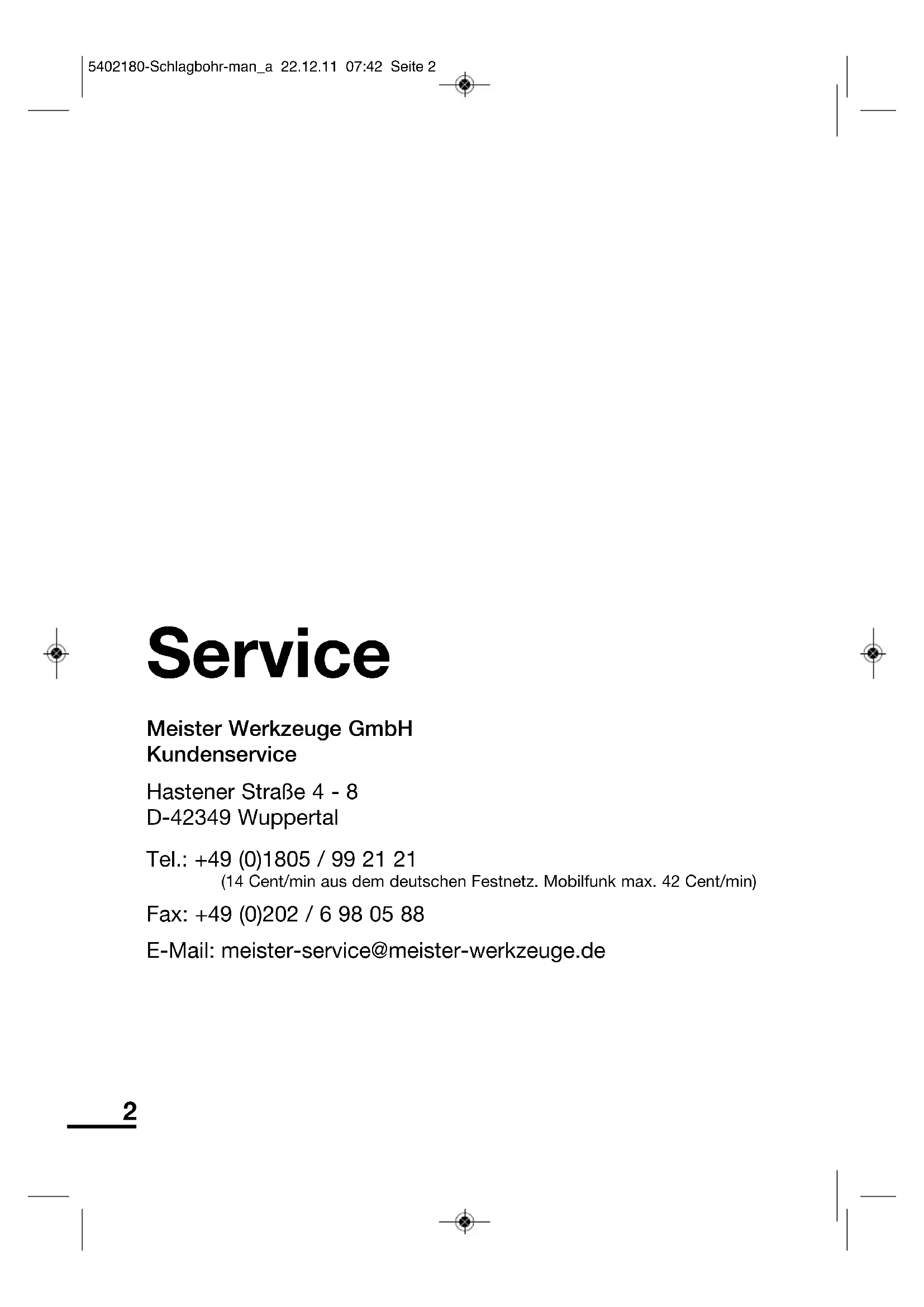 Jede Verwertung außerhalb der engen Grenzen des Urheberrechtsgesetzes ist ohne Zustim mung der Meister Werkzeuge GmbH unzu möglich und strafbar.