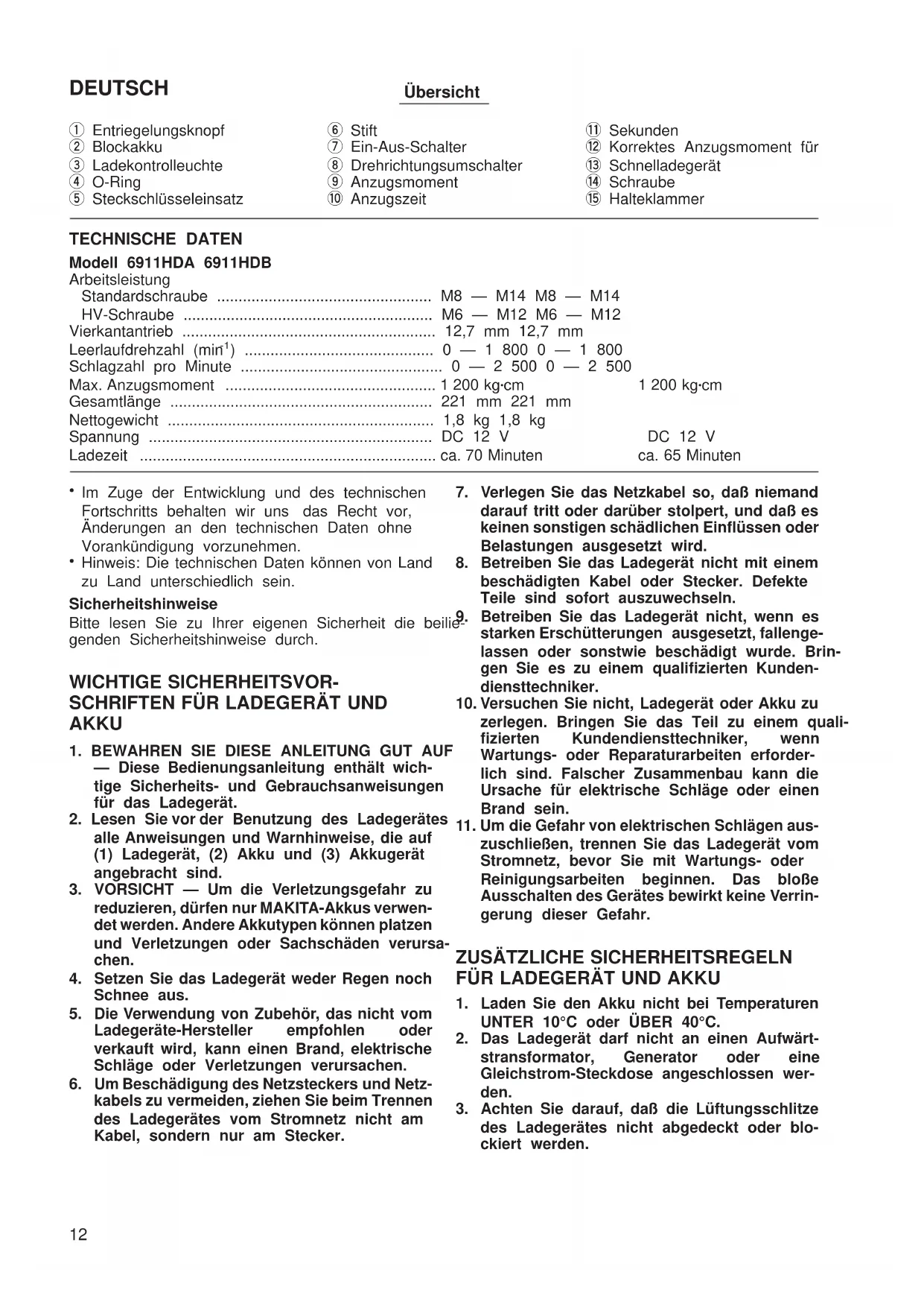 BEDIENUNGSANLEITUNG 6911HDA MAKITA