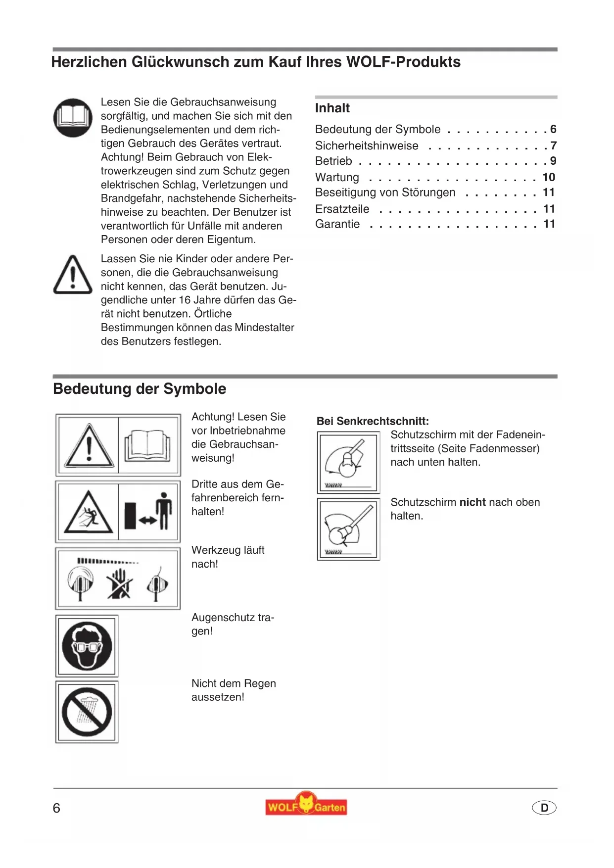 - D Herzlichen Glückwunsch zum Kauf Ihres WOLF-Produkts Inhalt Bedeutung der Symbole p. 6