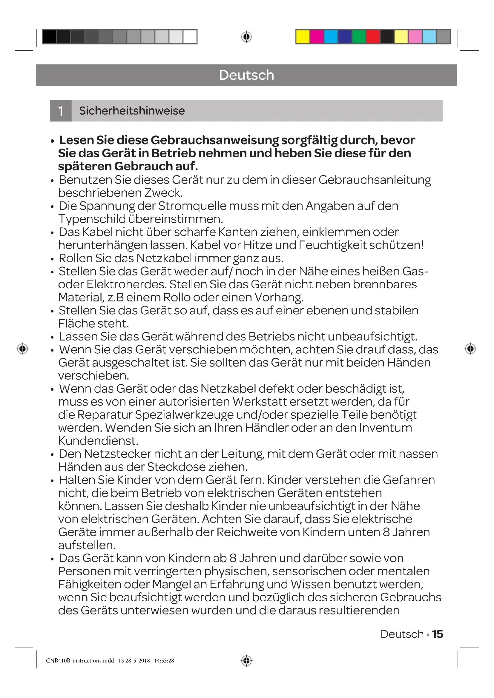Finden Sie kostenlos die Bedienungsanleitung des Geräts CNB410B INVENTUM als PDF.