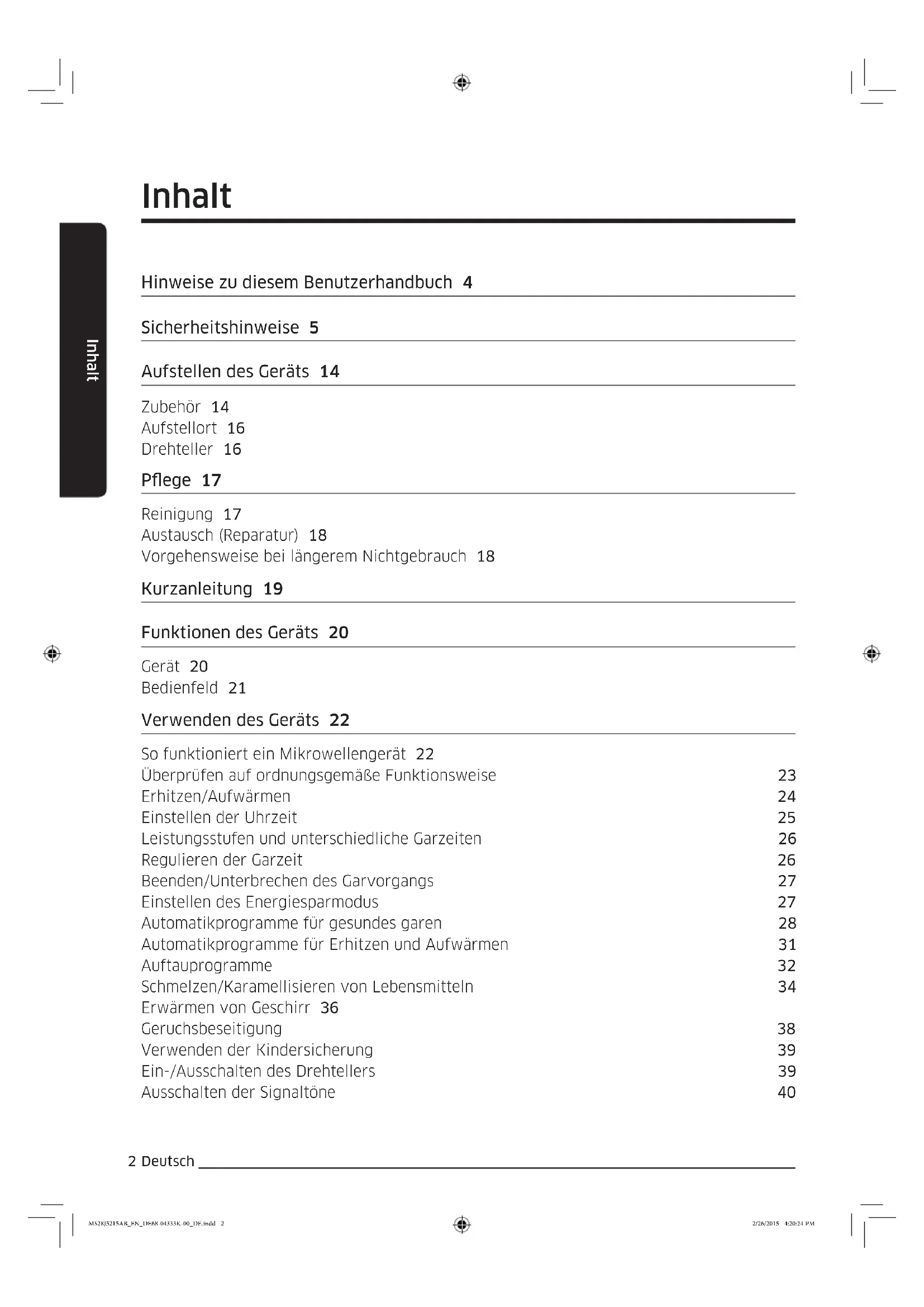 - Gleichmäßige Temperaturverteilung in den Lebensmitteln MS28J5215AB_EN_DE68-04333K-00_DE.indd 22 2/26/2015 4:20:27 PMDeutsch