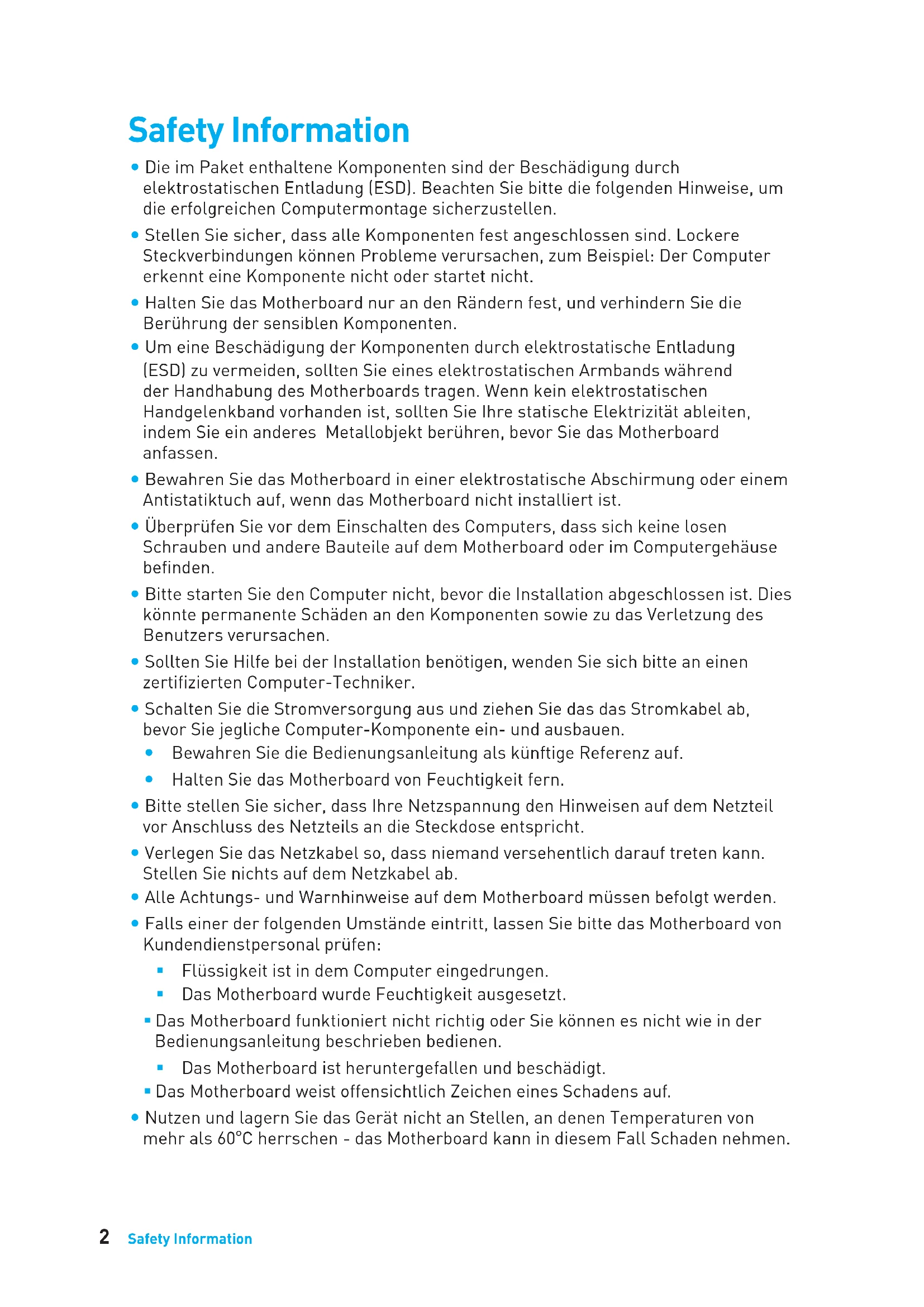 Überhitzung beschädigt die CPU und das System nachhaltig. Stellen Sie stets eine korrekte Funktionsweise des CPU Kühlers sicher, um die CPU vor Überhitzung zu schützen. Stellen Sie sicher, dass eine gleichmäßige Schicht der thermischen Paste zwischen der CPU und dem Kühlkörper vorhanden ist, um die Wärmeableitung zu erhöhen.