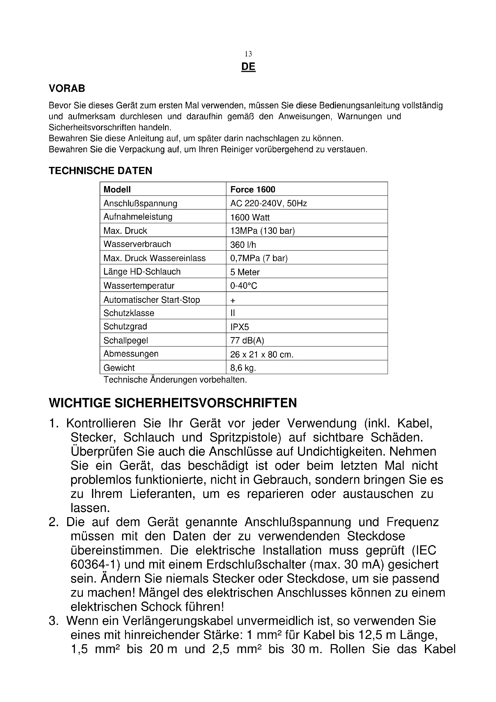 Laden Sie die Anleitung für Ihr Hochdruckreiniger kostenlos im PDF-Format! Finden Sie Ihr Handbuch Force 1600 - Eurom und nehmen Sie Ihr elektronisches Gerät wieder in die Hand. Auf dieser Seite sind alle Dokumente veröffentlicht, die für die Verwendung Ihres Geräts notwendig sind. Force 1600 von der Marke Eurom.