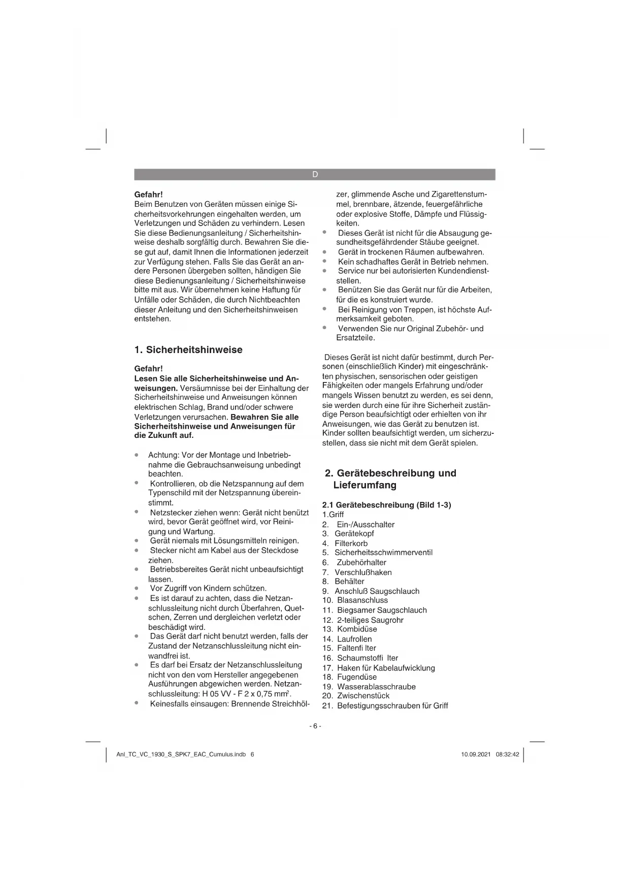 Welche Fehlfunktion weist das Gerät Ihrer Meinung nach auf (Hauptsymptom)? Beschreiben Sie diese Fehlfunktion. Anl_TC_VC_1930_S_SPK7_EAC_Cumulus.indb 11Anl_TC_VC_1930_S_SPK7_EAC_Cumulus.indb 11 10.09.2021 08:32:4210.09.2021 08:32:42D