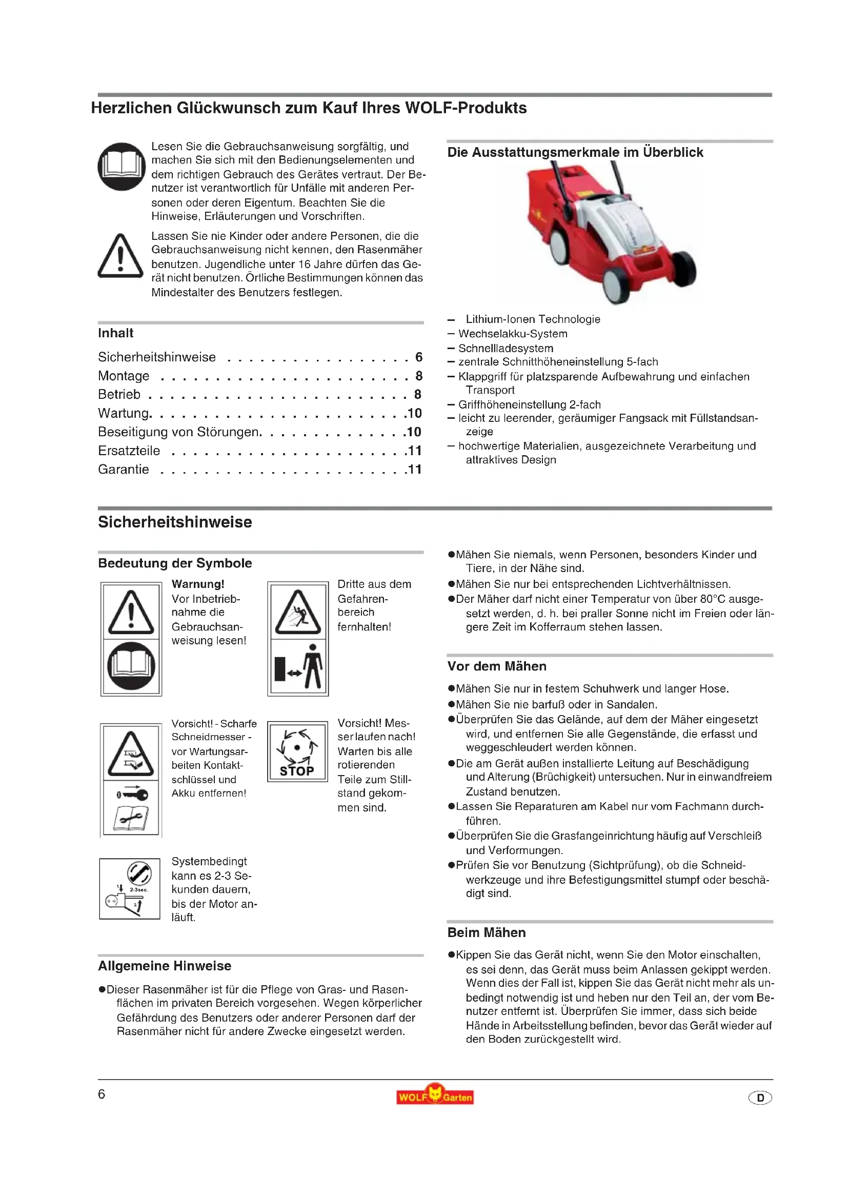 - D Herzlichen Glückwunsch zum Kauf Ihres WOLF-Produkts Inhalt Sicherheitshinweise p. 6