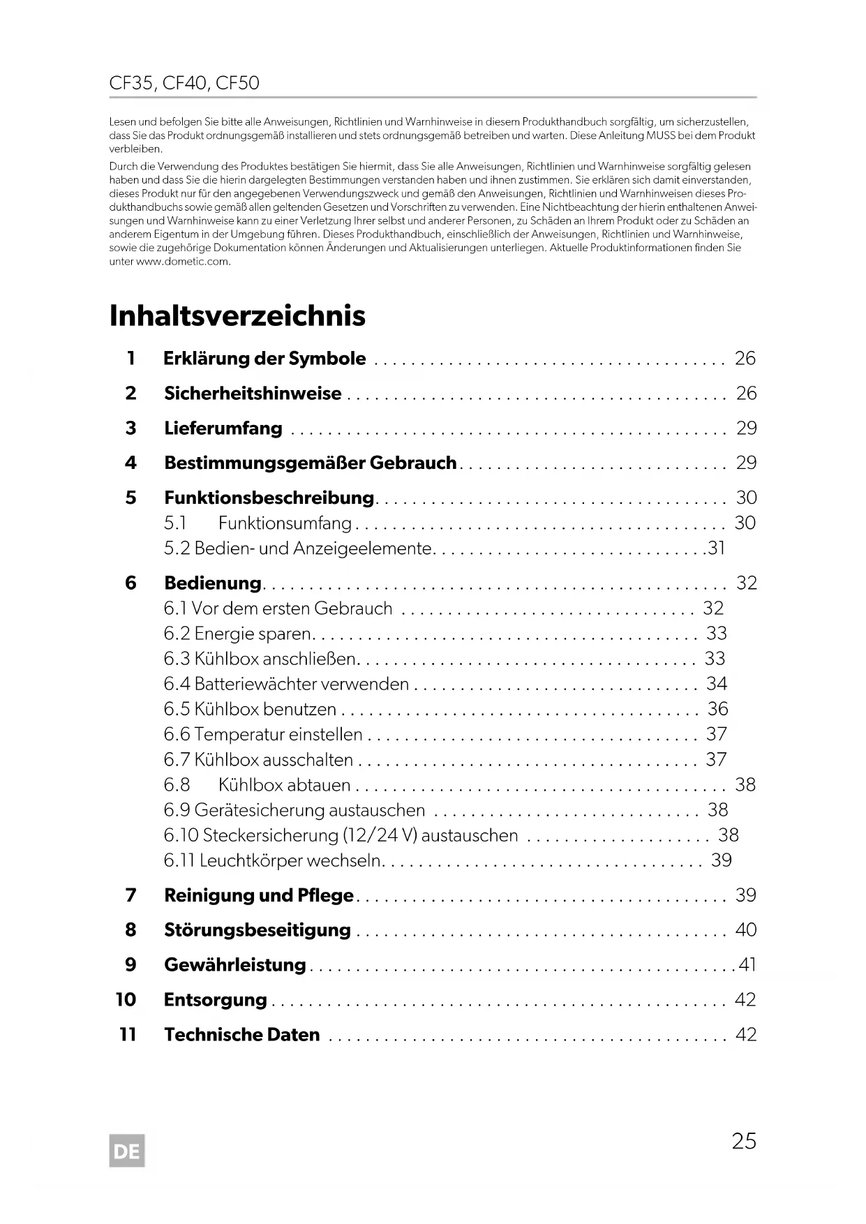 - 11 Technische Daten DometicCF35-CF50_OPM4445101783_EMEA16_202x-xx-xx.book Seite 25 Freitag, 18. Dezember 2020 5:37 17DE Erklärung der Symbole CF35, CF40, CF50 p. 42