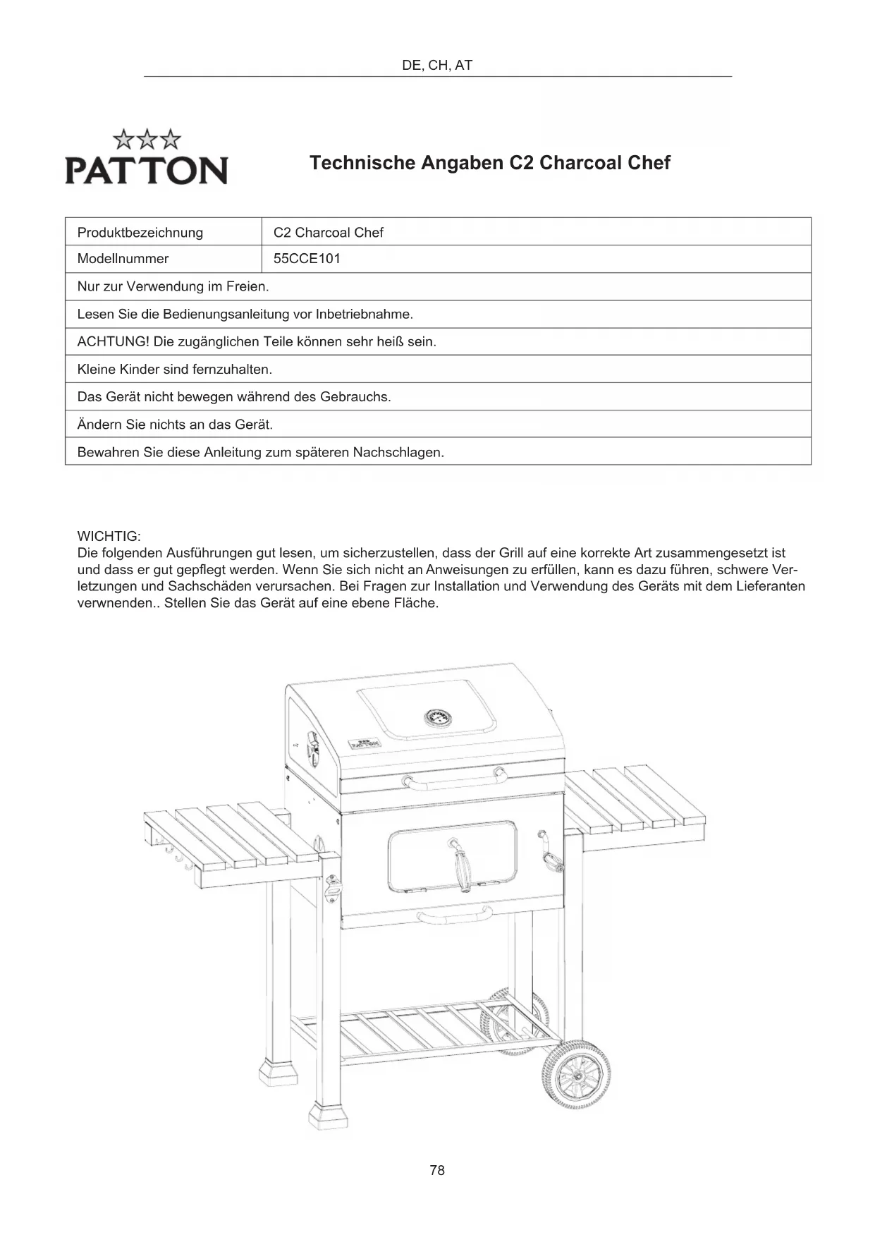 BEDIENUNGSANLEITUNG C2 Charcoal Chef Patton