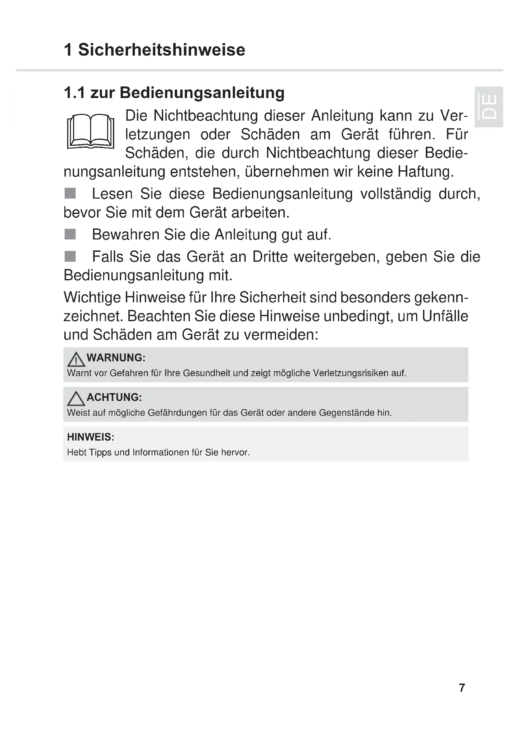 01_DD302_de.book Seite 7 Freitag, 17. April 2015 1:43 018 1 Sicherheitshinweise