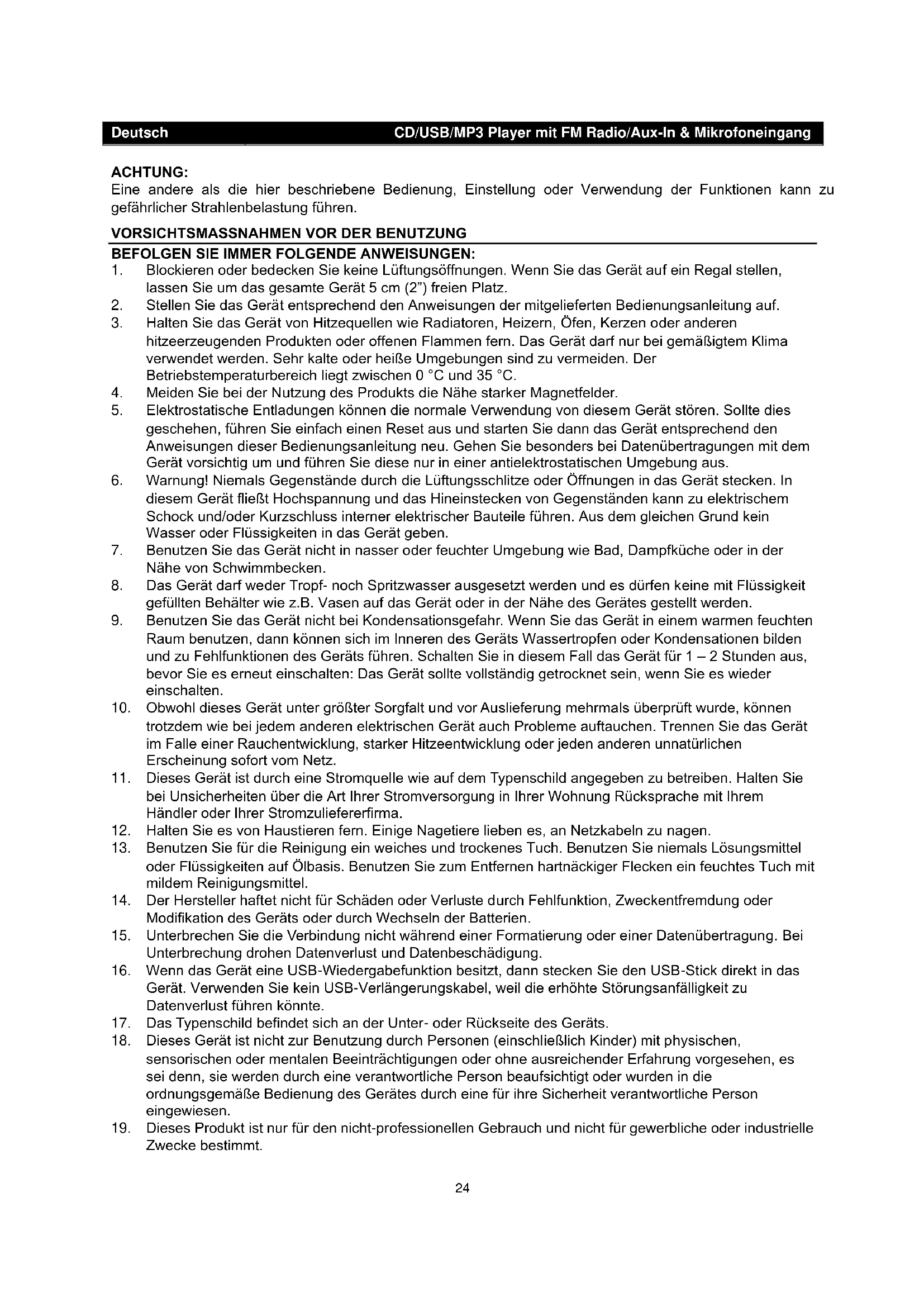 | Verwendung | H f6ren von Radiosendern, einfache Frequenzeinstellung, intuitive Bedienung. |