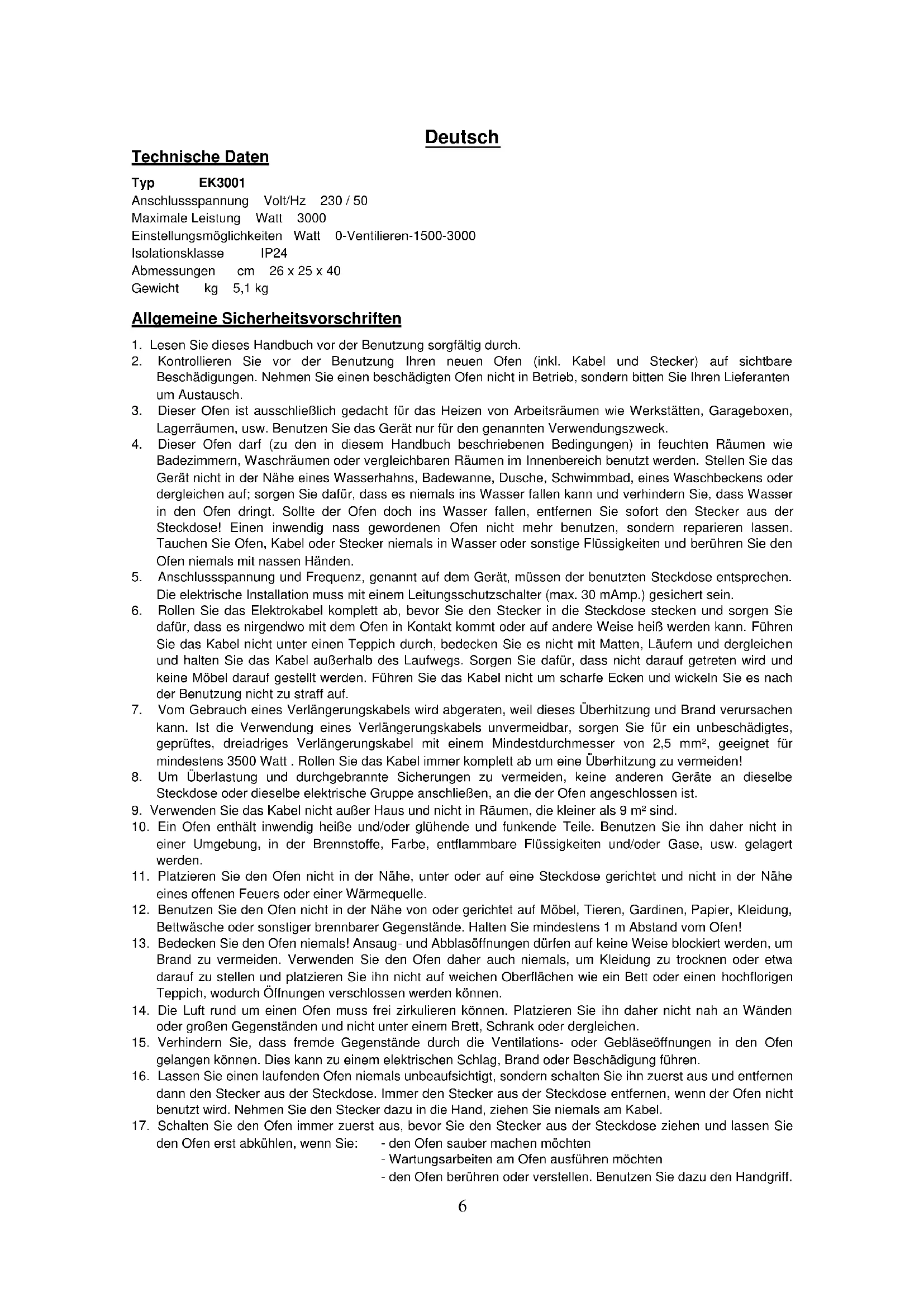 EK3001 - Heizung Euromac - Kostenlose Bedienungsanleitung