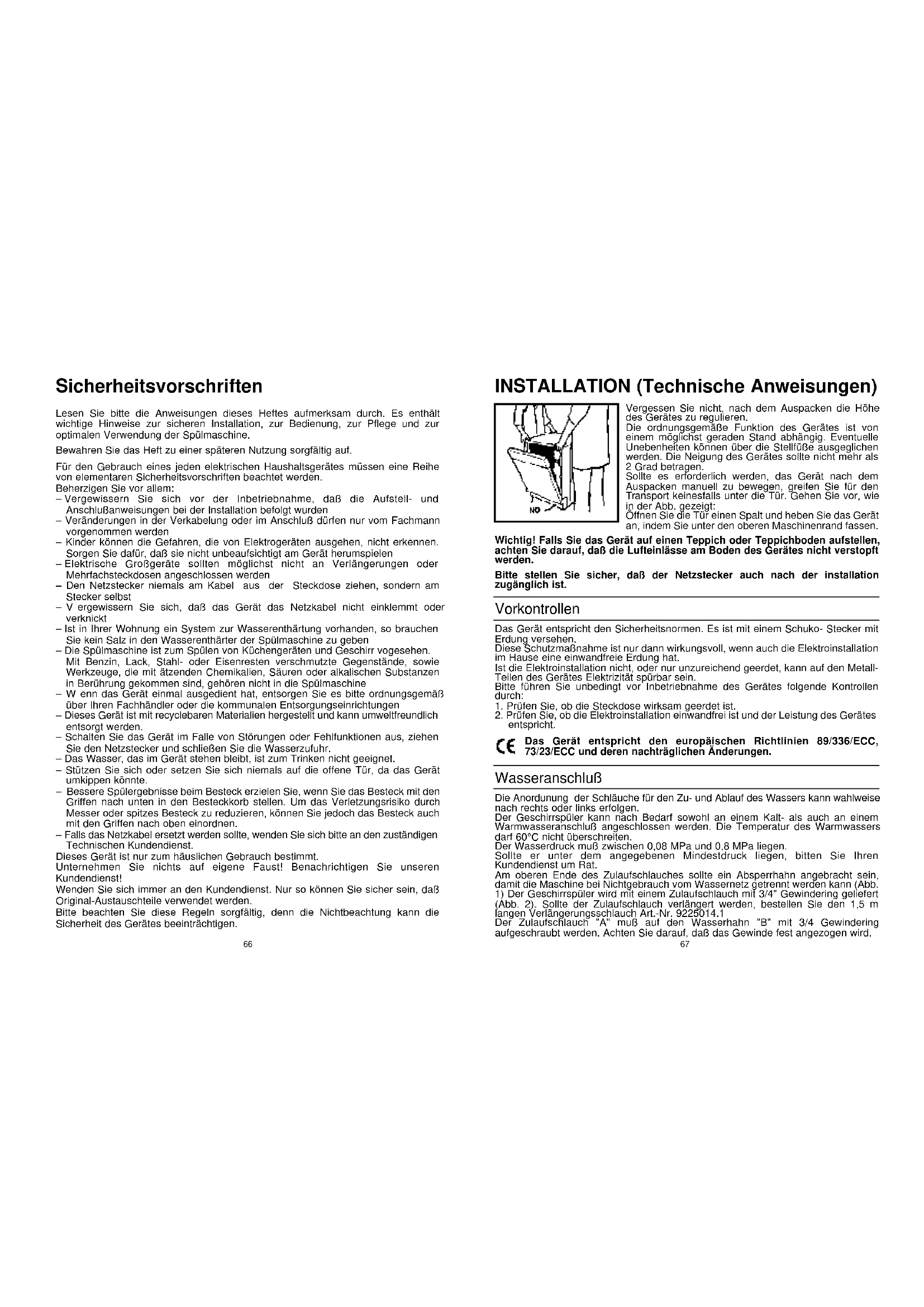 Lesen Sie bitte die Anweisungen dieses Heftes aufmerksam durch. Es enthält wichtige Hinweise zur sicheren Installation, zur Bedienung, zur Pflege und zur optimalen Verwendung der Spülmaschine.