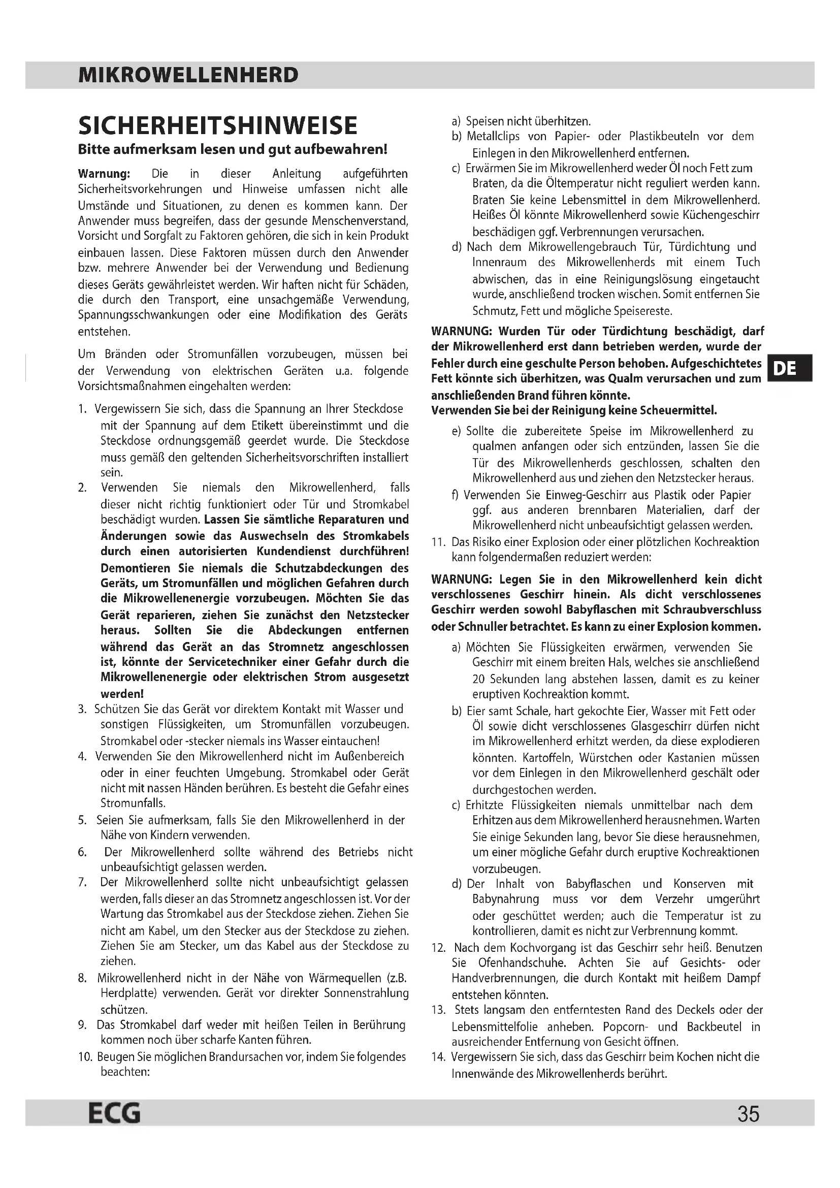MTD 2531 GISB - Mikrowelle ECG - Kostenlose Bedienungsanleitung