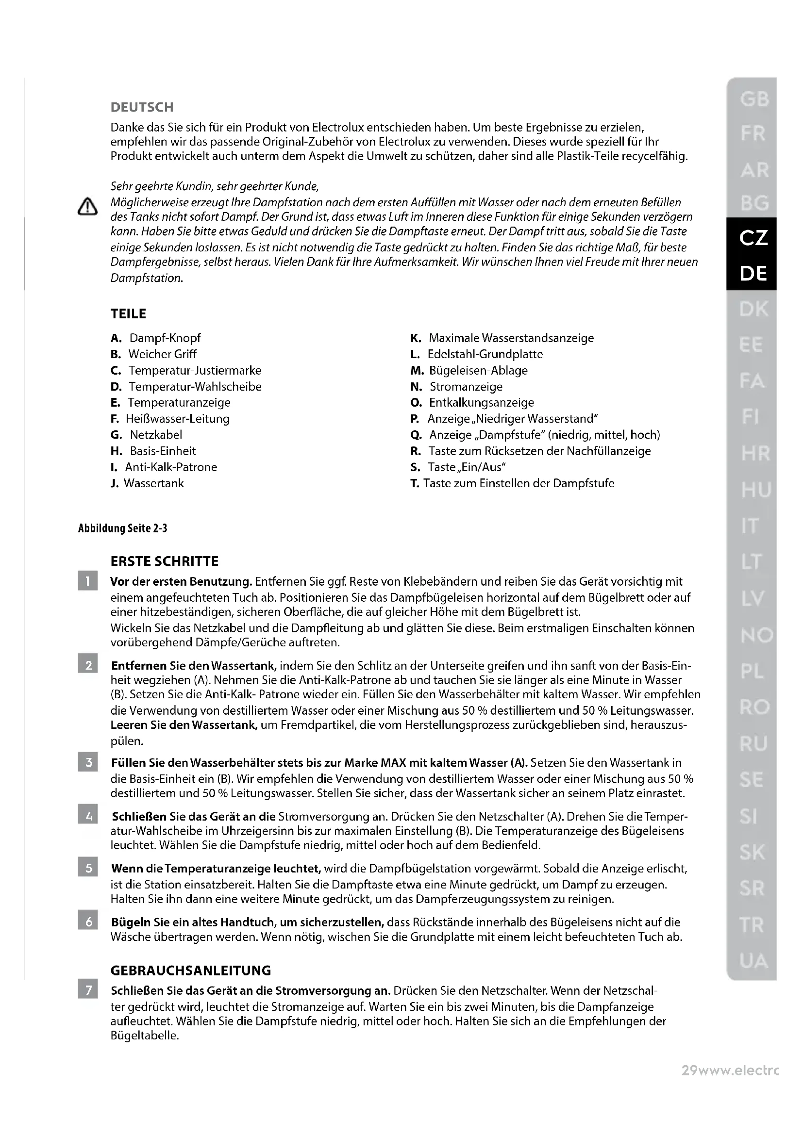 Lesen Sie die nachfolgenden Anweisungen sorgfältig durch, bevor Sie das Bügeleisen zum ersten Mal in Betrieb nehmen.