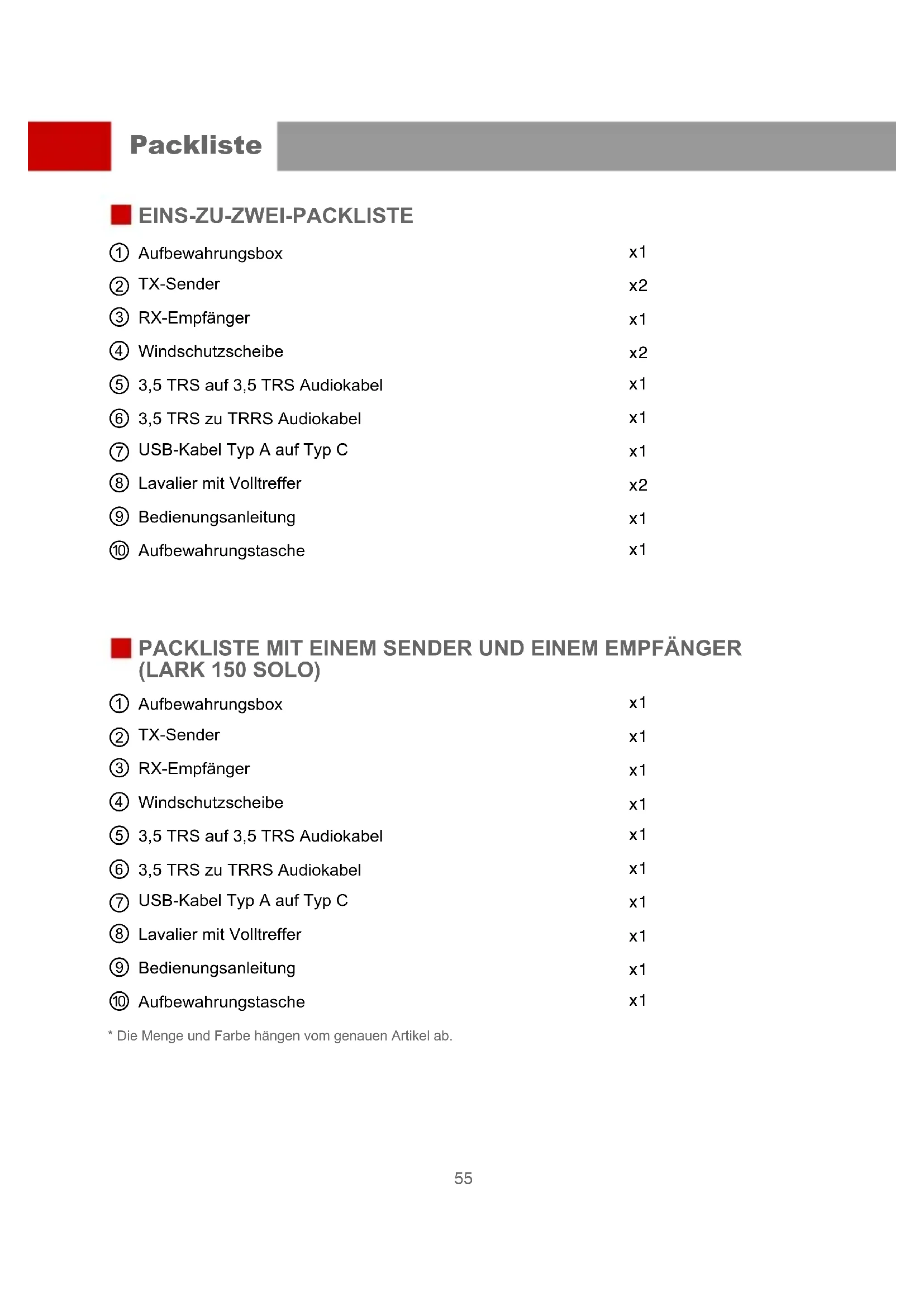- Die Menge und Farbe hängen vom genauen Artikel ab. Packliste USB-Kabel Typ A auf Typ C