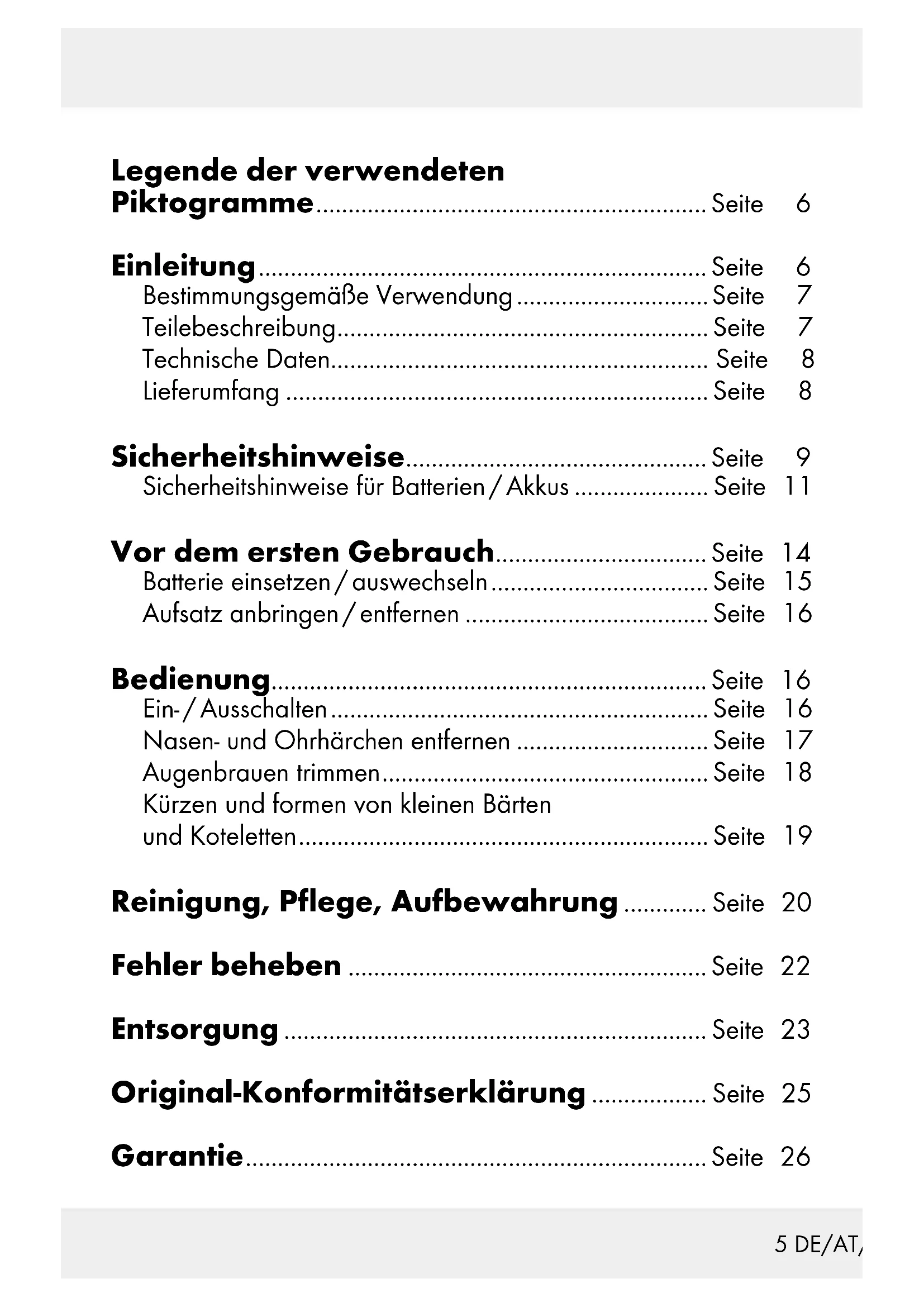 DE/AT/CH Bedienungs- und Sicherheitshinweise Seite 5