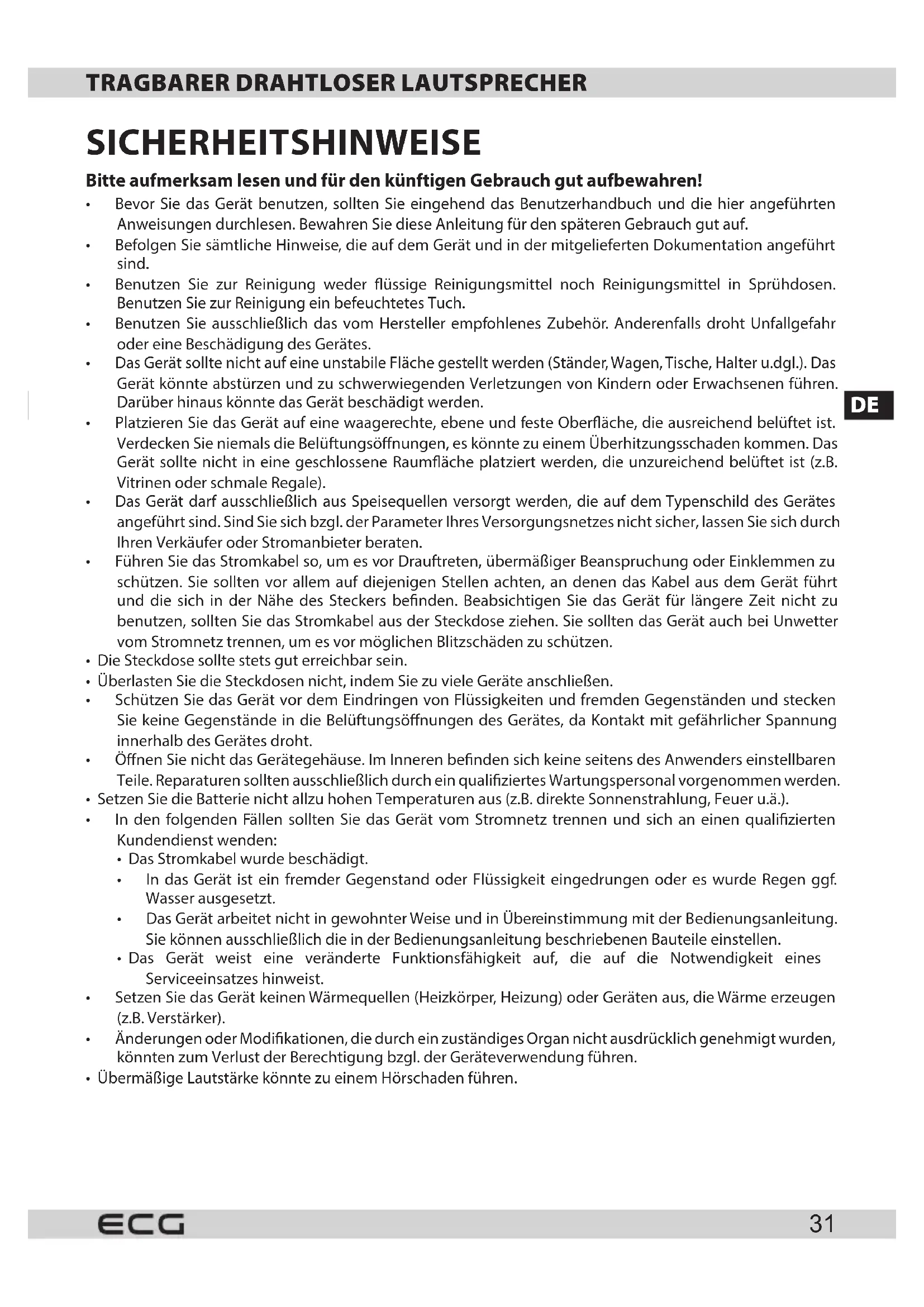 DE TRAGBARER DRAFTLOSER LAUTSPRECHER BEDIENUNGSPANLEITUNG
