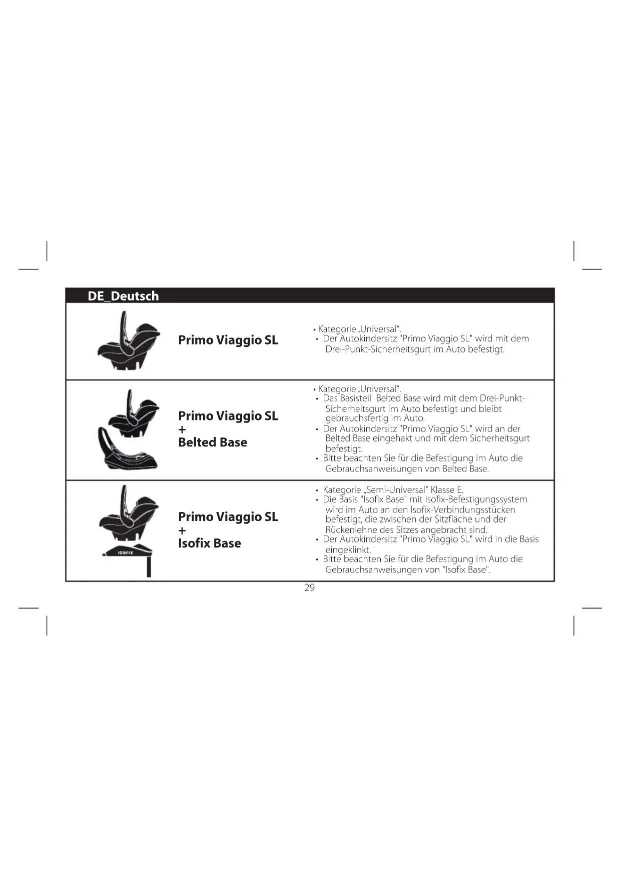- Bitte beachten Sie für die Befestigung im Auto die Gebrauchsanweisungen von "Isofix Base". DE_Deutsch30 Vielen Dank, dass Sie sich für ein Produkt Peg-Pérego entschieden haben. Produkteigenschaften