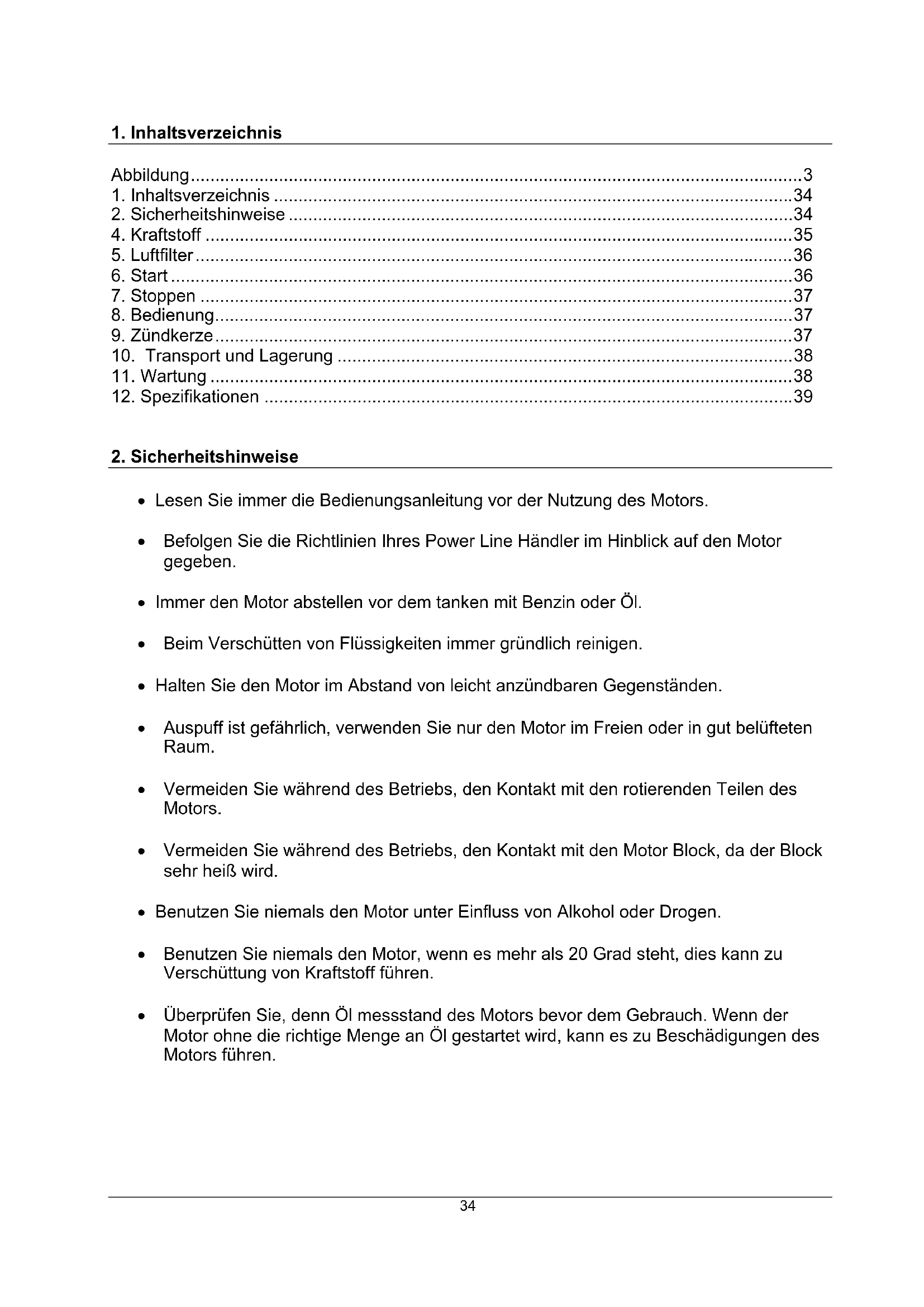 - Benutzen Sie niemals den Motor unter Einfluss von Alkohol oder Drogen.
