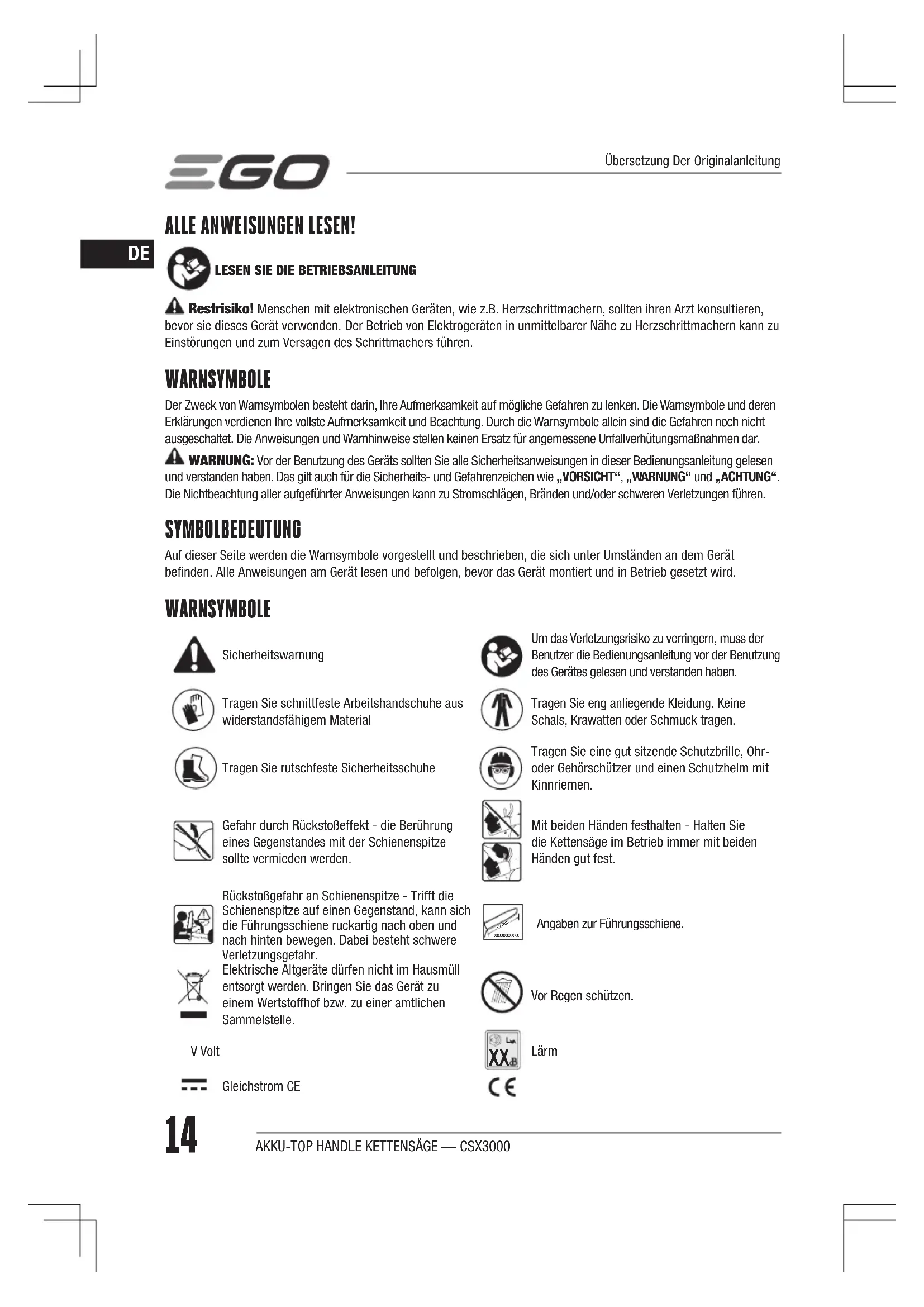 BEDIENUNGSANLEITUNG CSX3000 EGO