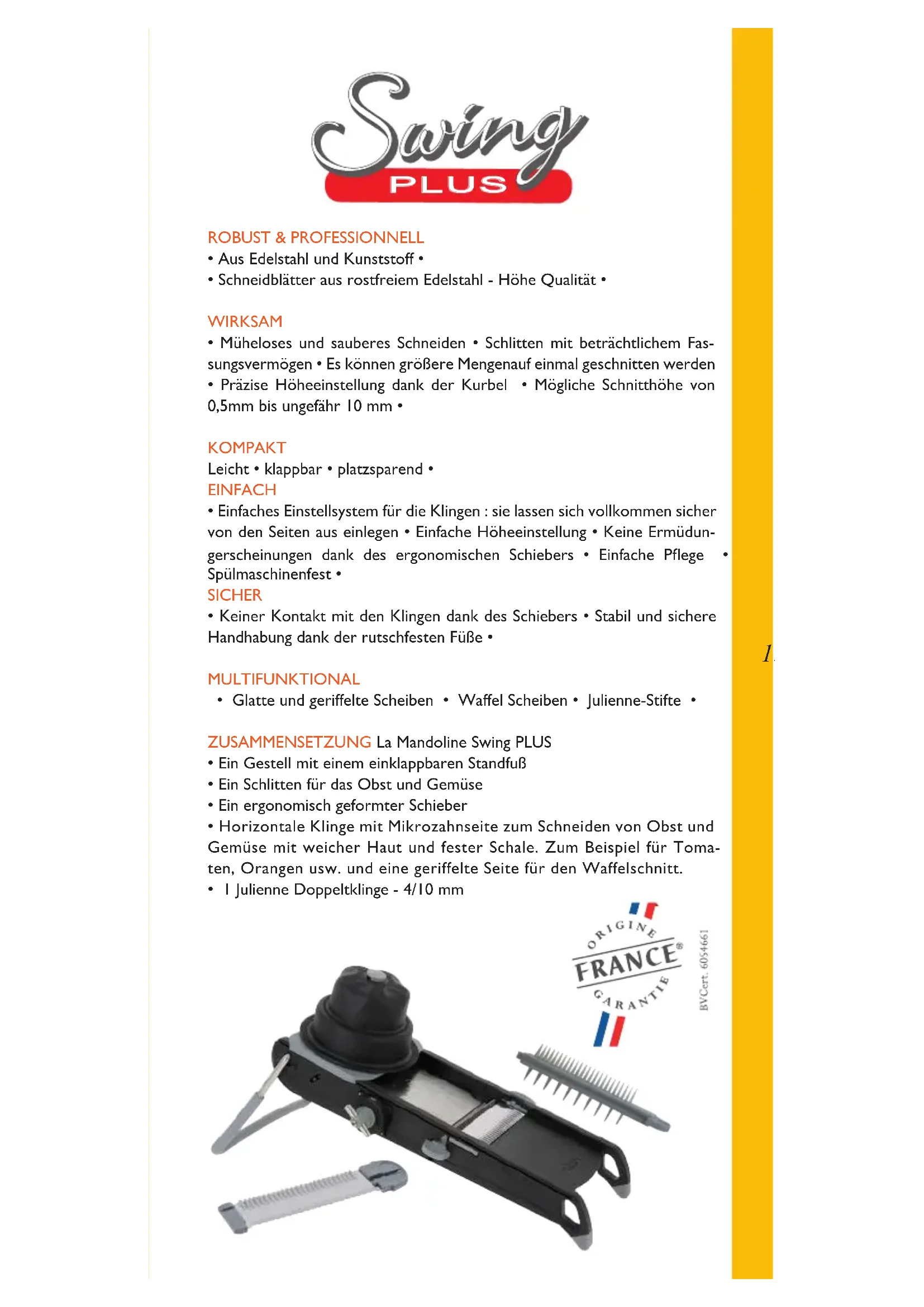 ZUSAMMENSETZUNG La Mandoline Swing PLUS