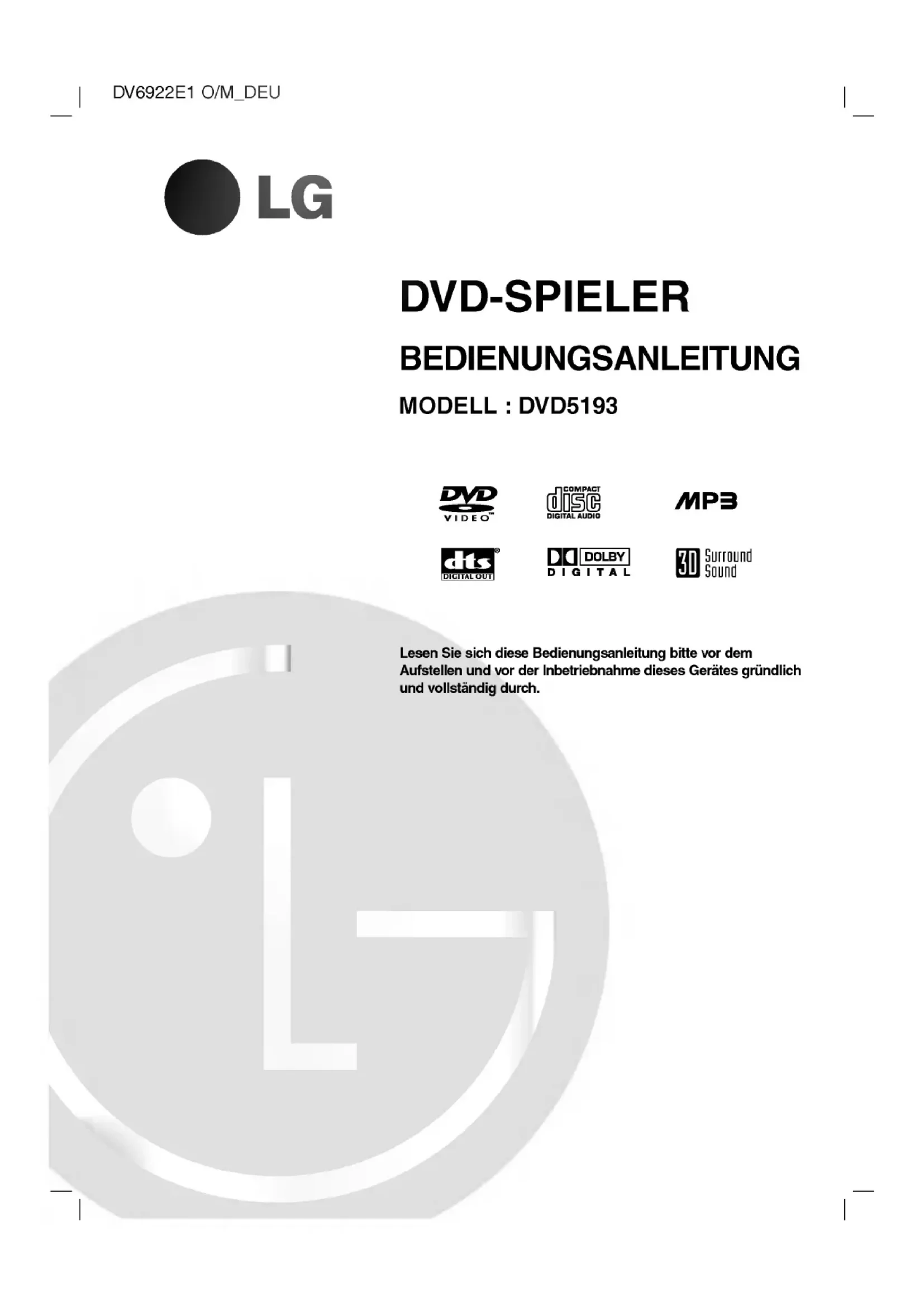 Digital Theater Systems, Inc.DVD-SPIELER BEDIENUNGSANLEITUNG MODELL DVD5193 LesenSiesichdieseBedienungsanleitungbittevordemAufstellenundvorderInbetriebnahmediesesGeratesgrundlichundvollstandigdurch.DV6922E1