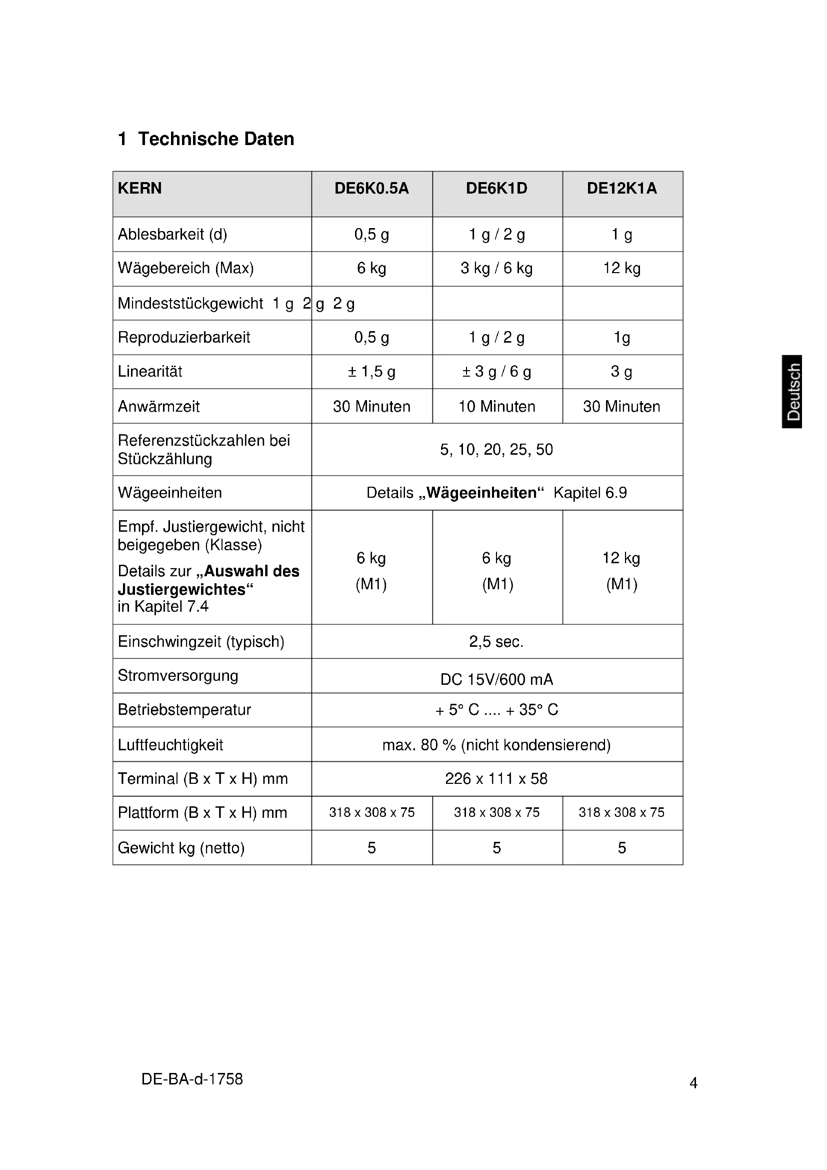 | KERN | DE6K0.5A | DE6K1D | DE12K1A |