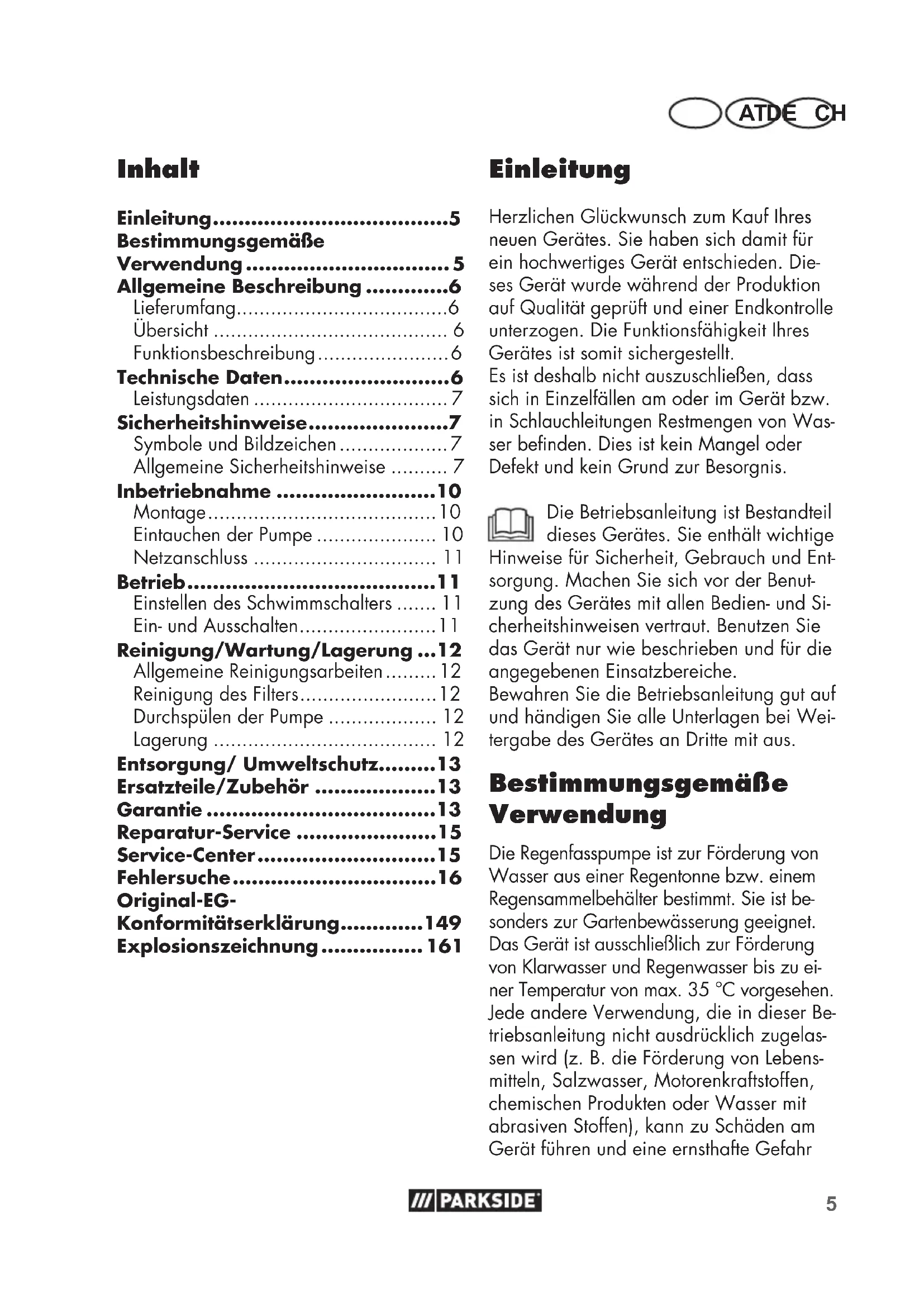 - Bewahren Sie die Pumpe trocken und frostsicher und außerhalb der Reichwei- te von Kindern auf.13 ATDE CH