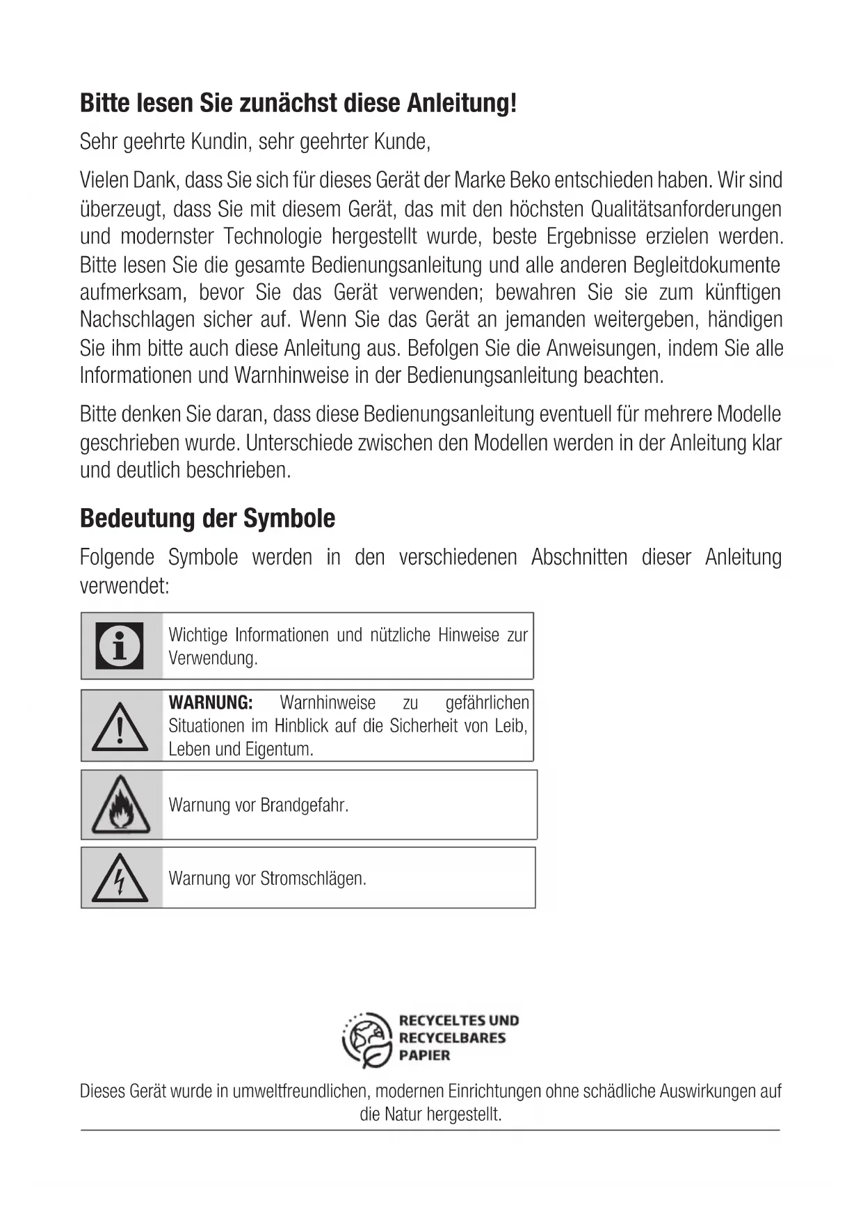 - Beko-Produkte stimmen mit geltenden Sicherheitsstandards überein; daher sollten Gerät oder Netzkabel zur Vermeidung von Gefahren im Falle von Schäden durch den Händler, ein Kunden- center oder einen spezialisierten, autorisierten Serviceanbieter repariert oder ersetzt werden. Fehlerhafte oder unqualifizierte Reparaturen können Gefahren und Risiken für den Benutzer verursachen.