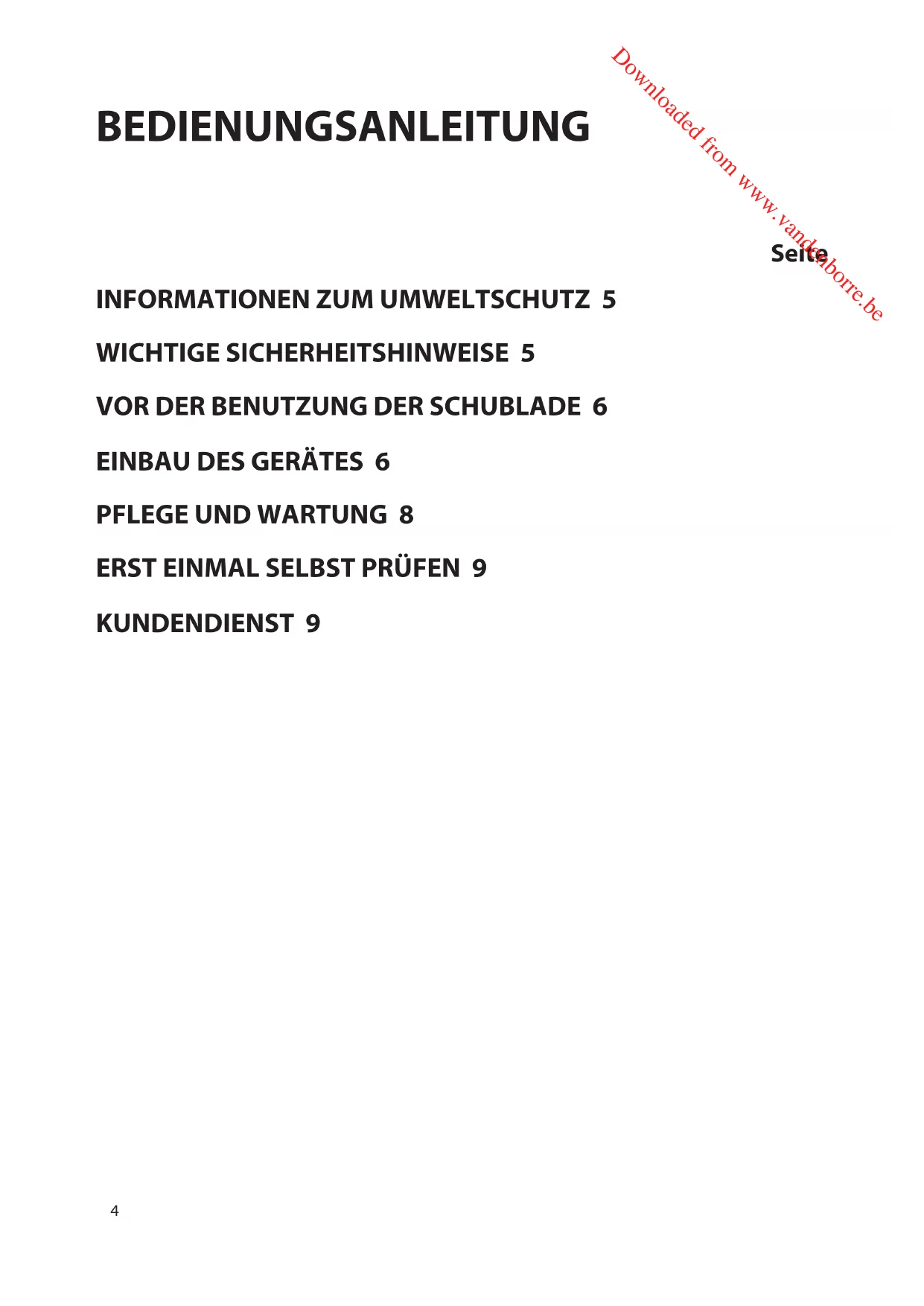 Downloaded from www.vandenborre.be4 BEDIENUNGSANLEITUNG Seite