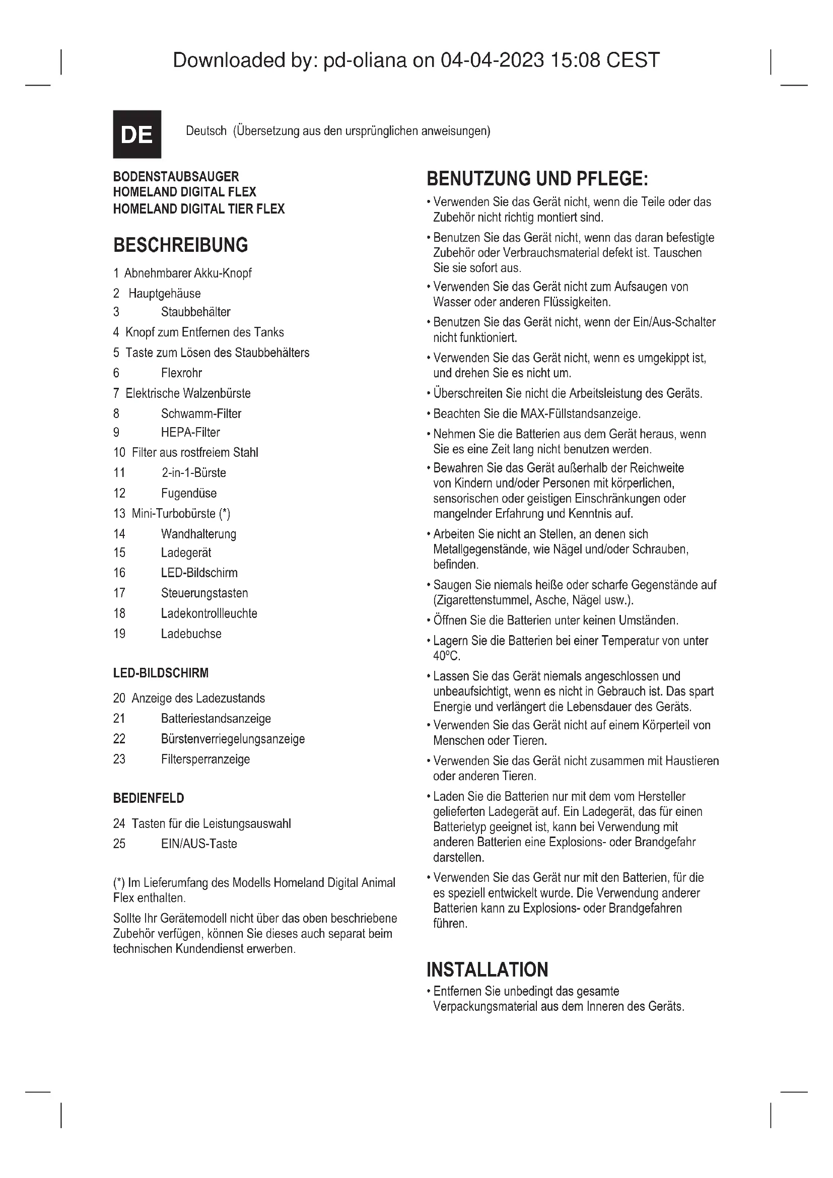 - Dieses Gerät hat eine eigene Parkposition für eine bequeme und einfache Aufbewahrung. Downloaded by: pd-oliana on 04-04-2023 15:08 CESTREINIGUNG