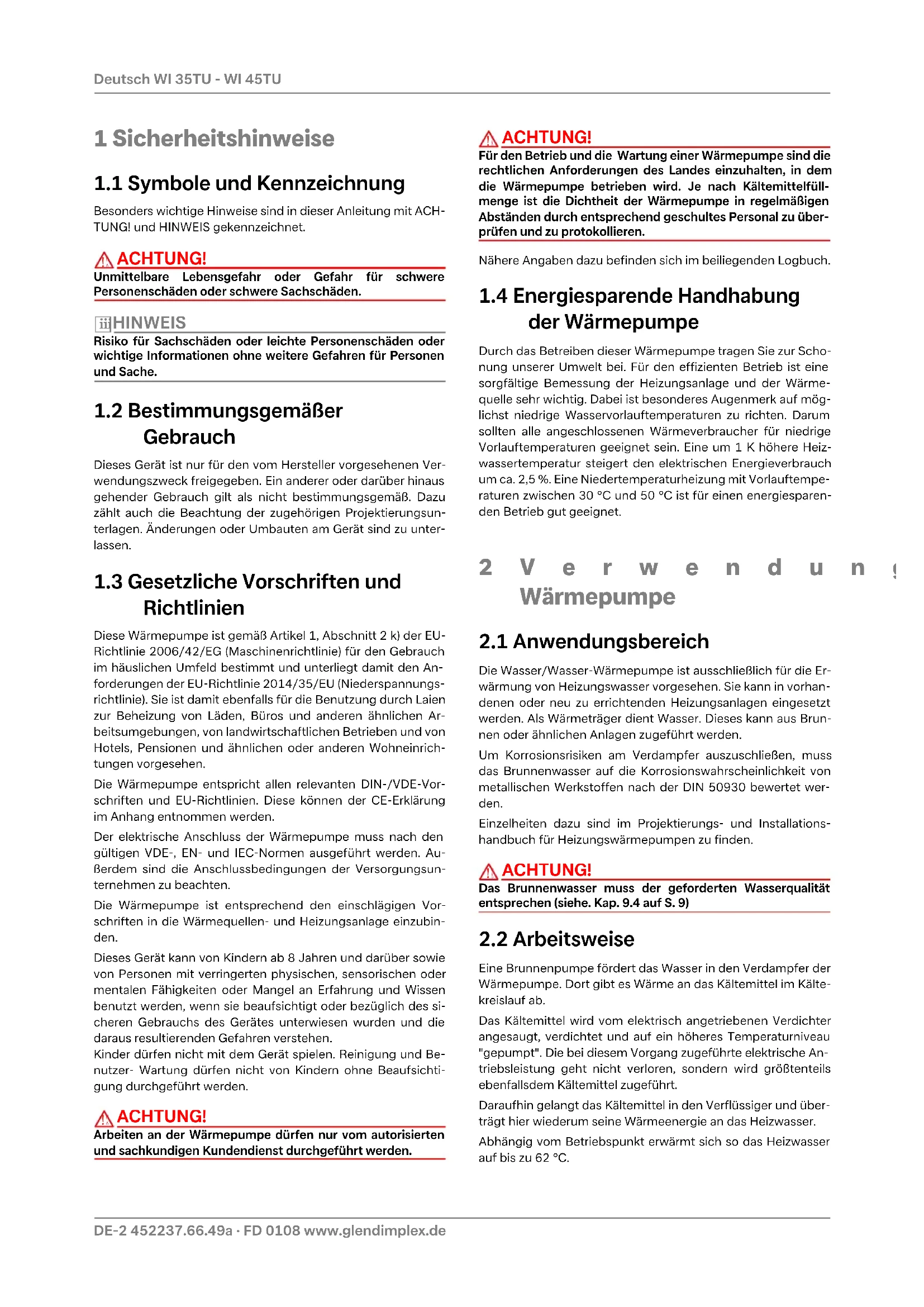 Wärmepumpen.DE-6 452237.66.49a · FD 0108 www.glendimplex.de Deutsch WI 35TU - WI 45TU