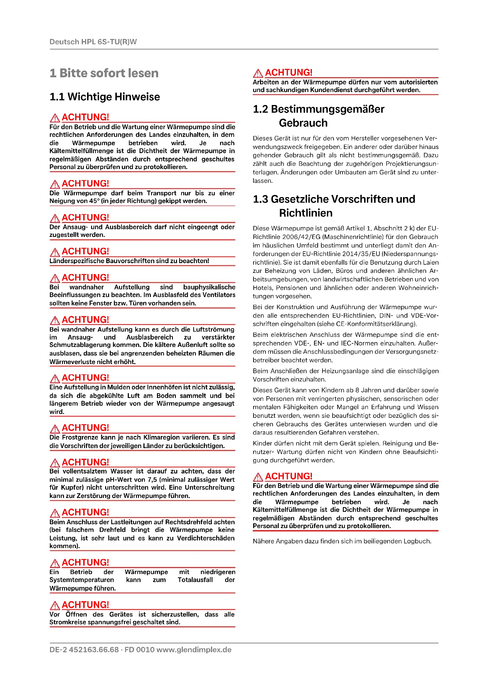 HPL 6S-TUW Sole-Wasser-Wärmepumpe: neinwww.glendimplex.de 452163.66.68 · FD 0010 DE-13 HPL 6S-TU(R)W Deutsch Erforderliche Angaben über Raumheizgeräte und Kombiheizgeräte mit Wärmepumpe