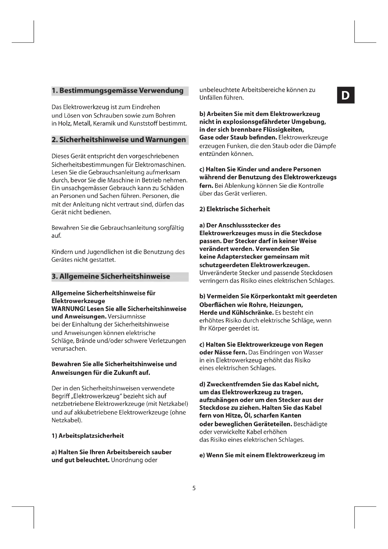 Das Elektrowerkzeug ist zum Eindrehen und Lösen von Schrauben sowie zum Bohren in Holz, Metall, Keramik und Kunststo bestimmt.
