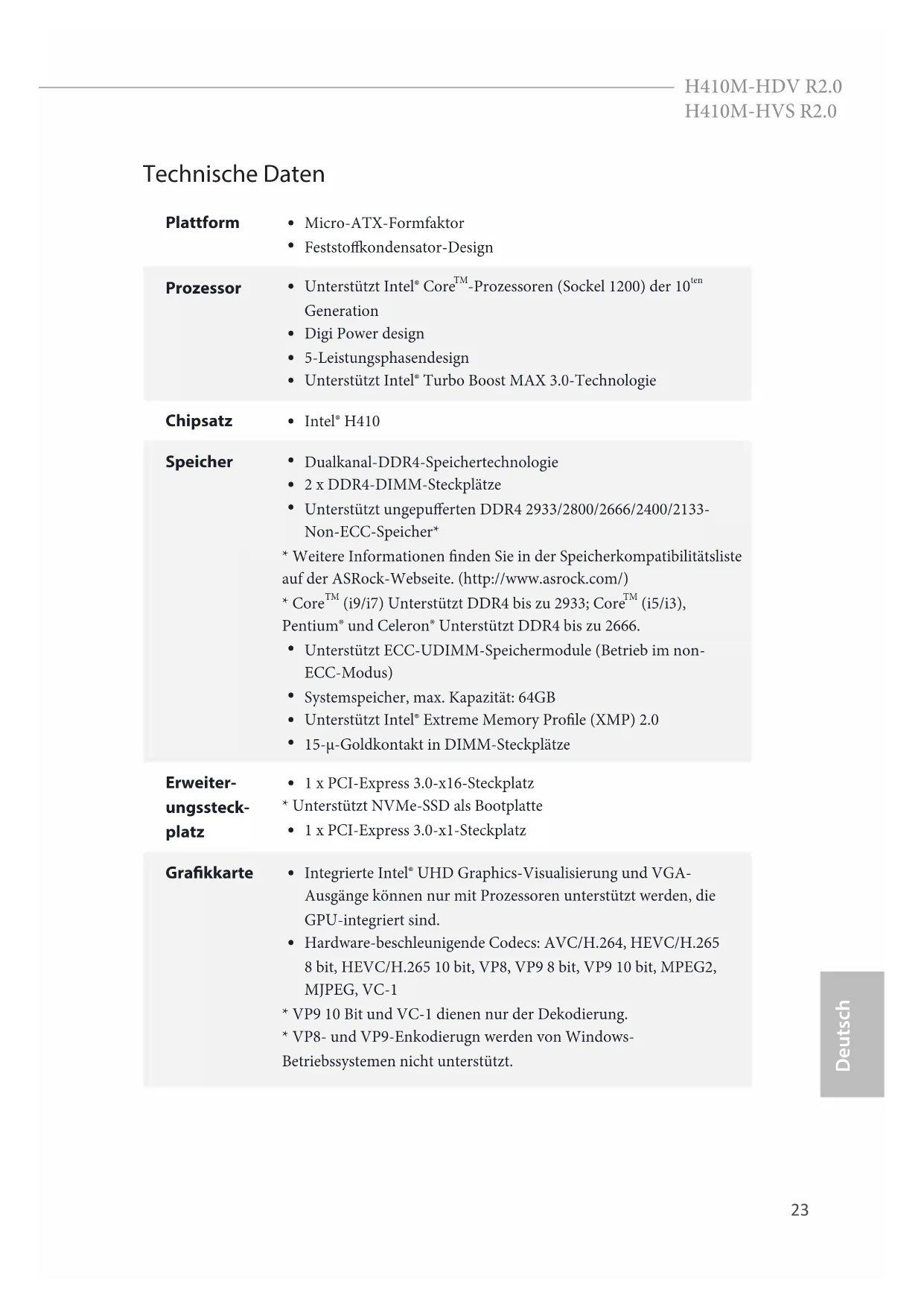 H410MHVS R2.0 - Motherboard ASROCK - Kostenlose Bedienungsanleitung