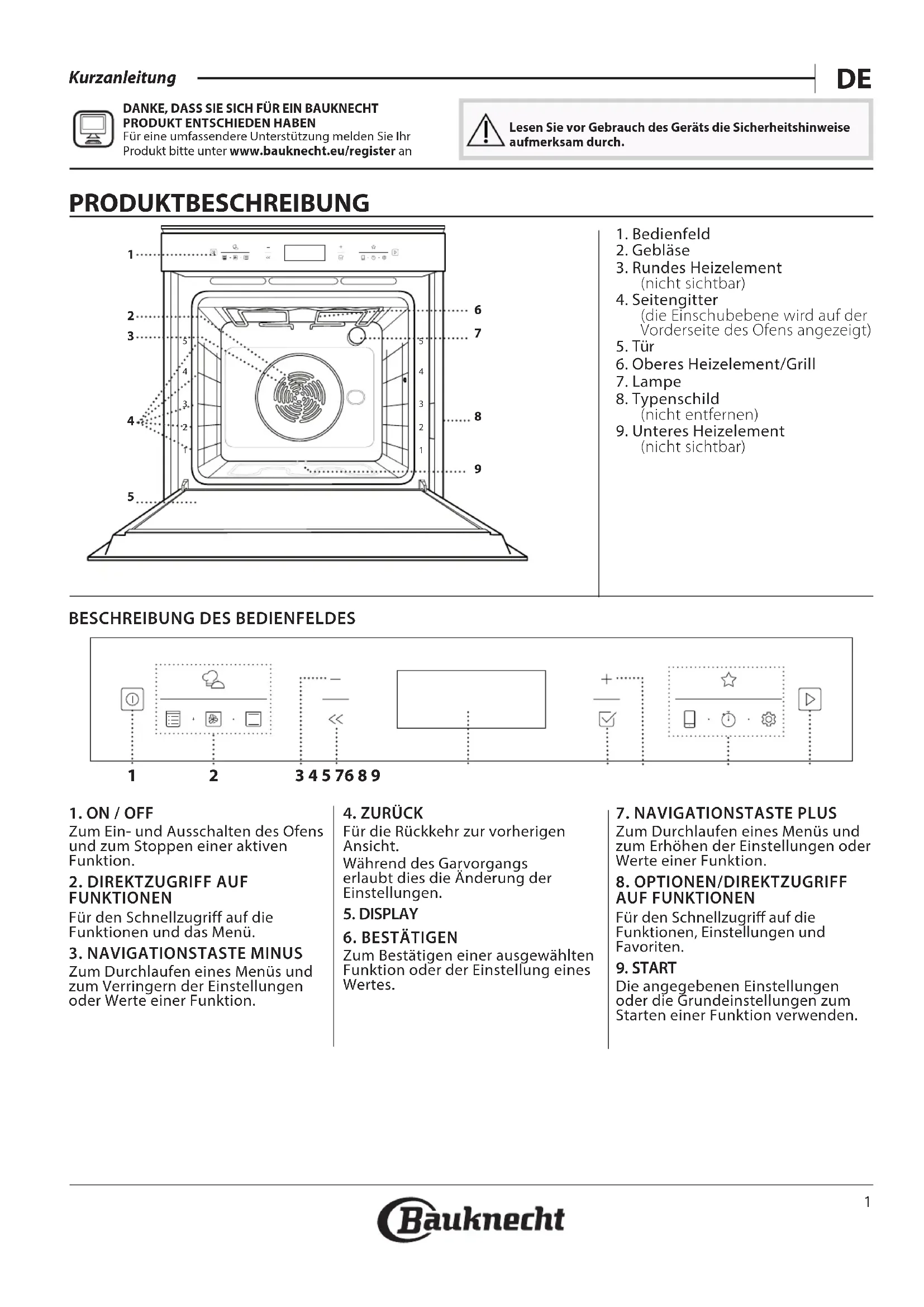 Die angegebenen Einstellungen oder die Grundeinstellungen zum Starten einer Funktion verwenden. DANKE, DASS SIE SICH FÜR EIN BAUKNECHT PRODUKT ENTSCHIEDEN HABENFür eine umfassendere Unterstützung melden Sie Ihr Produkt bitte unter www.bauknecht.eu/register anLesen Sie vor Gebrauch des Geräts die Sicherheitshinweise aufmerksam durch.2 ZUBEHÖRTEILE