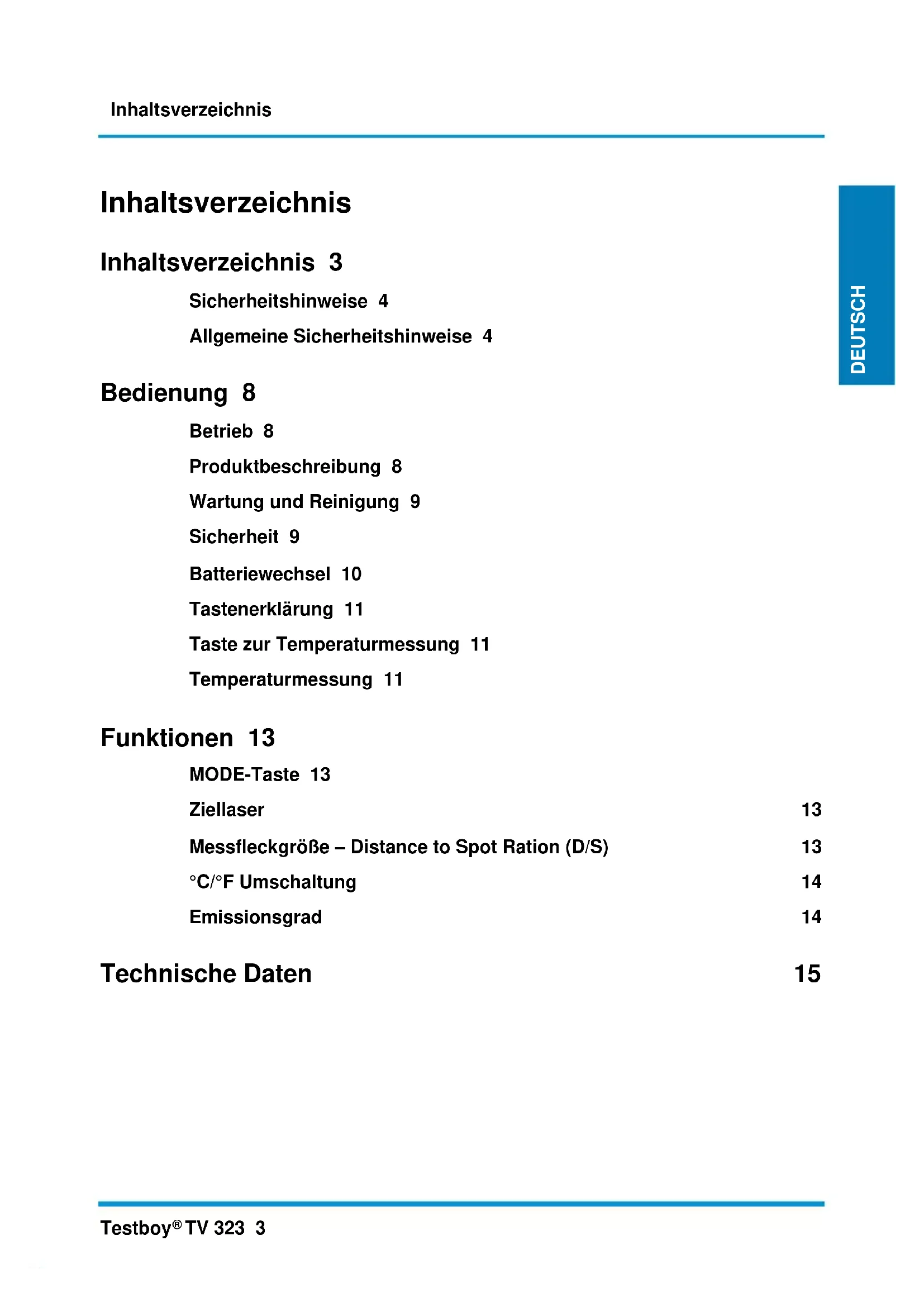 TV 323 - Thermometer Testboy - Kostenlose Bedienungsanleitung
