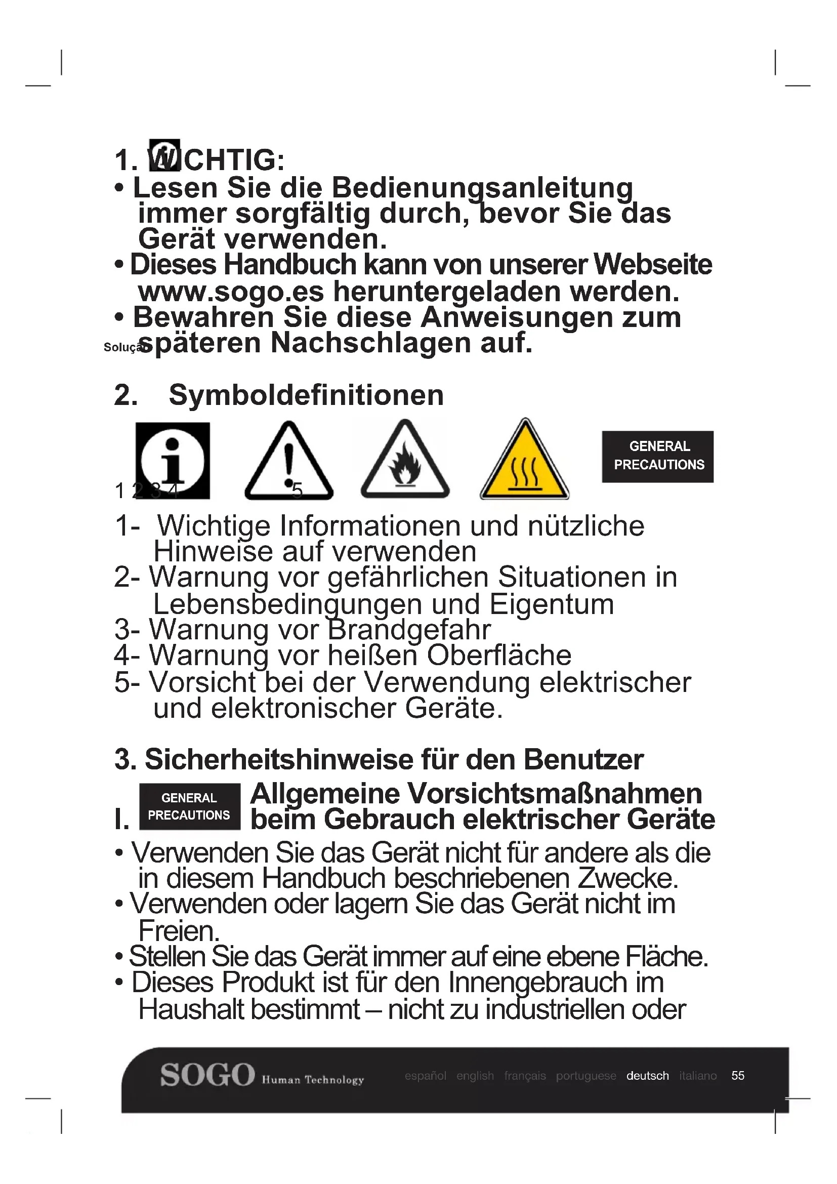 - Dieses Handbuch kann von unserer Webseite www.sogo.es heruntergeladen werden.
