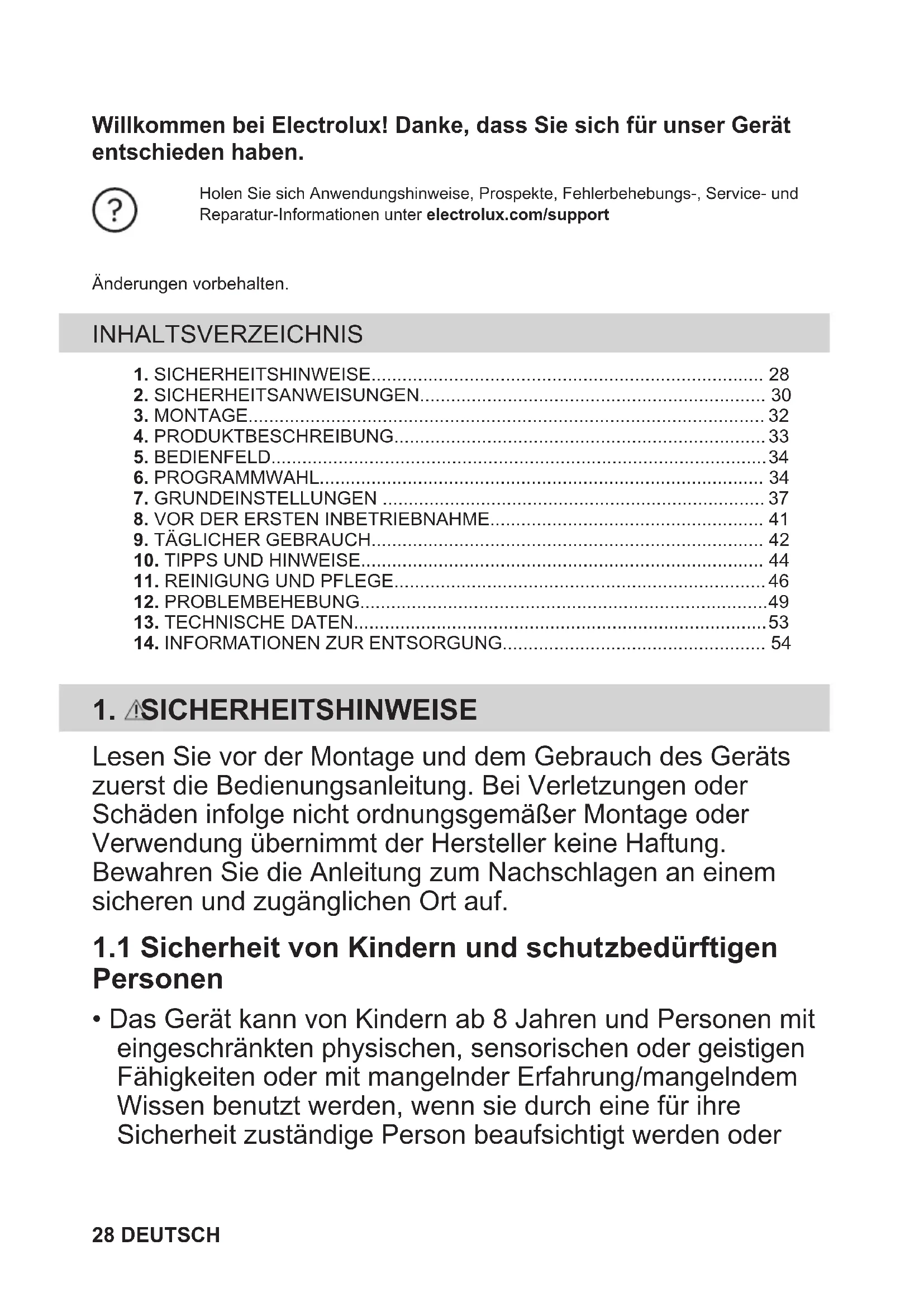 - Das Gerät kann von Kindern ab 8 Jahren und Personen mit eingeschränkten physischen, sensorischen oder geistigen Fähigkeiten oder mit mangelnder Erfahrung/mangelndem Wissen benutzt werden, wenn sie durch eine für ihre Sicherheit zuständige Person beaufsichtigt werden oder 28 DEUTSCHvon dieser Person Anweisungen erhalten haben, wie das Gerät sicher zu bedienen ist und welche Gefahren bei nicht ordnungsgemäßer Bedienung bestehen.